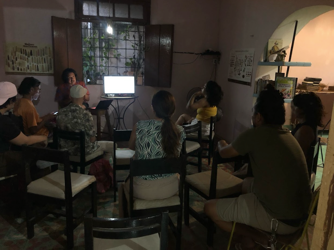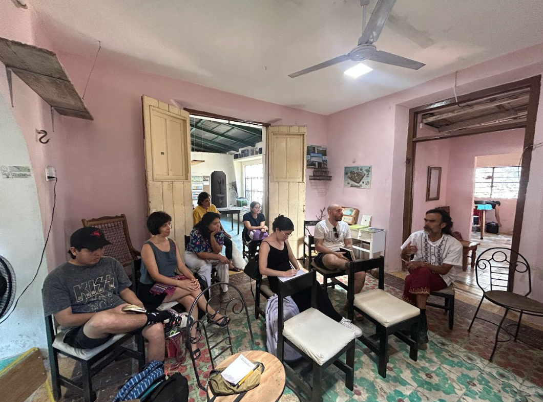 Quien guía las actividades se llama Gabriel Pérez, es de Nicaragua y se mudó a Yucatán en 2024. Según sus propias palabras, sintió que una forma responsable de habitar un lugar que recién conoce es propiciar espacios de discusión. Gabriel Pérez es sicólogo y maestro en Teoría Crítica, pero su postura sobre la crítica artística no se centra en el análisis de la obra sino en las instituciones y los circuitos artísticos del arte, pues eso es lo que determina a las obras y no al revés.