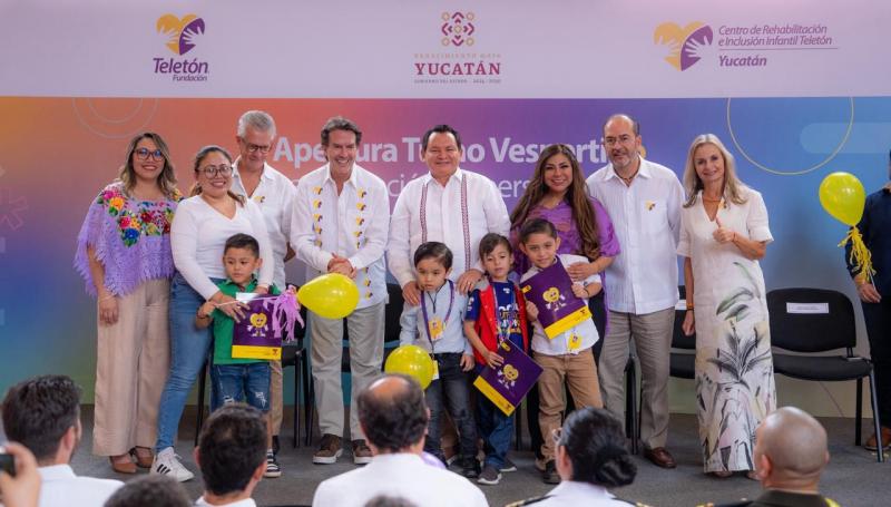 El gobernador Joaquín Díaz Mena, acompañado por la presidenta honoraria del Sistema DIF Yucatán, Wendy Méndez Naal, y el presidente de la Fundación Teletón, Fernando Landeros Verdugo, destacó que esta clínica brindará atención bajo un modelo integral que combina diagnóstico temprano, terapias personalizadas y acompañamiento familiar, con el objetivo de impulsar el desarrollo e inclusión social de los menores.