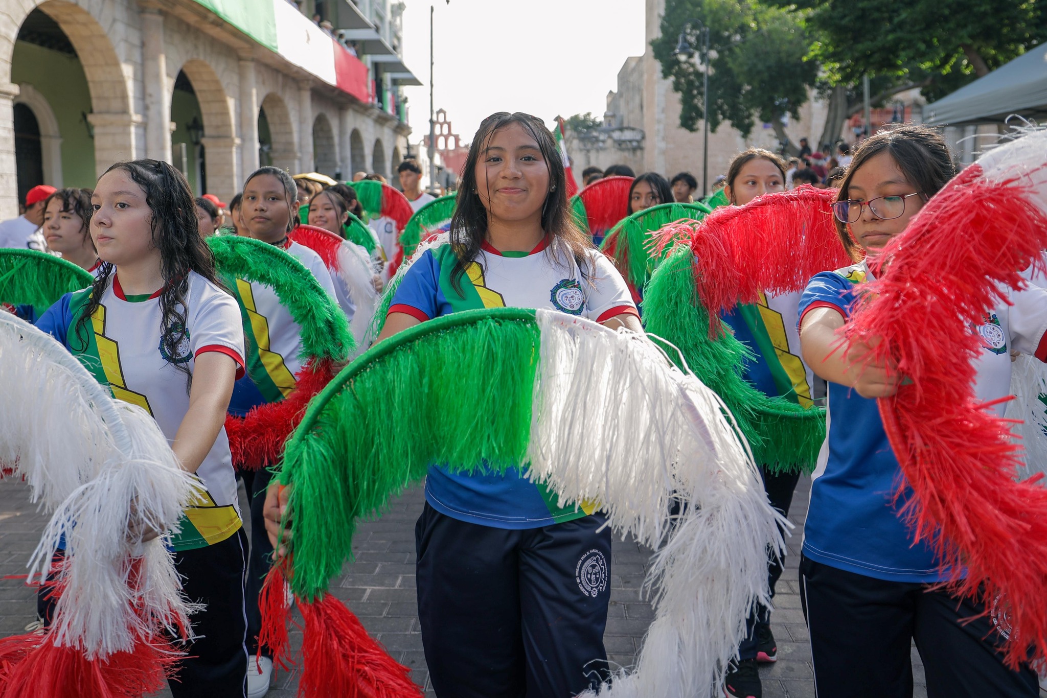 Un nutrido contingente de cinco mil 24 elementos, pirámides humanas, coloridas estampas alusivas y acrobacias, se dejaron ver en las calles del Centro Histórico de Mérida durante el Desfile Cívico-Deportivo del 115 aniversario de la Revolución Mexicana, el cual fue encabezado por el Gobernador Joaquín Díaz Mena.