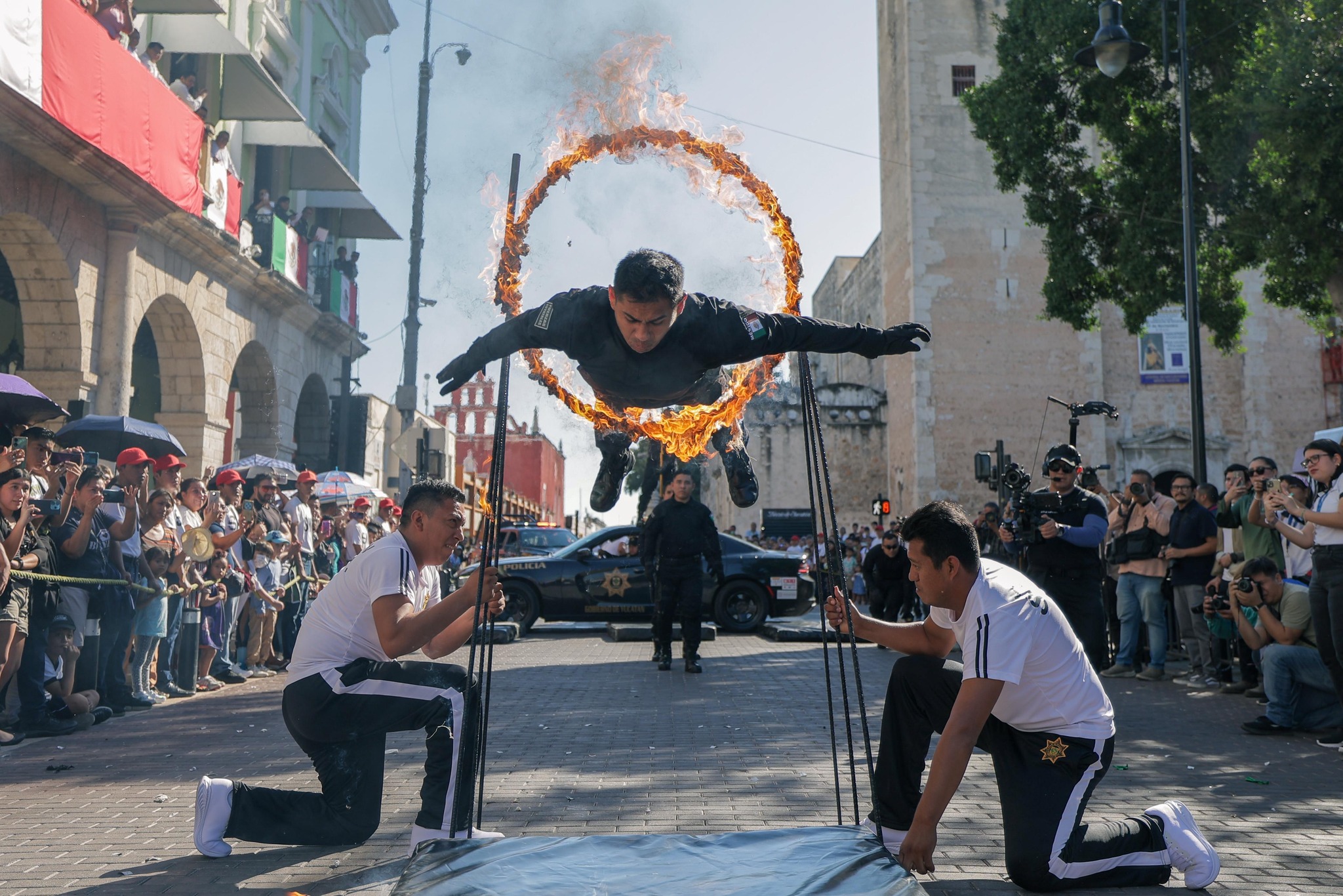 Uno de los momentos más esperados por los asistentes fue la presencia de agentes de la Secretaría de Seguridad Pública (SSP), quienes, con destreza y disciplina, presentaron acrobacias, pirámides en piso y en vehículos en movimiento, así como algunos procedimientos, causando gran impresión y admiración en pequeños y adultos.