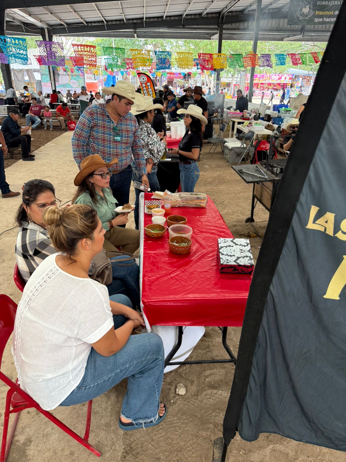 El evento reunió a siete u ocho productores de la región, todos presentando platillos que iban desde kibis, brochetas y asado, hasta propuestas tradicionales como barbacoa, birria, hamburguesas de cordero y el singular borrego al ataúd, un método de cocción que imita al borrego enterrado, pero preparado en un baúlmetálico especialmente diseñado para conservar el sabor y la jugosidad de la carne.