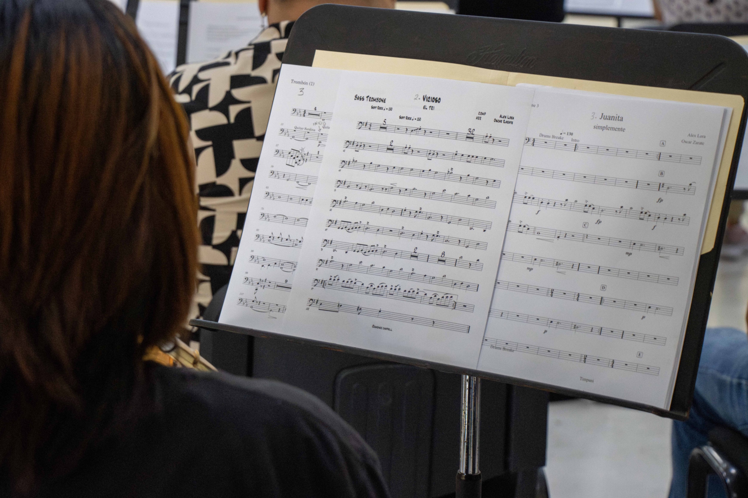 En el Salón de Usos Múltiples de la UNAY, las y los jóvenes músicos ensayan intensamente bajo la guía de sus docentes, afinando cuerdas, puliendo metales y ajustando arcos para que cada nota se integre al lenguaje rockero de la legendaria banda mexicana.