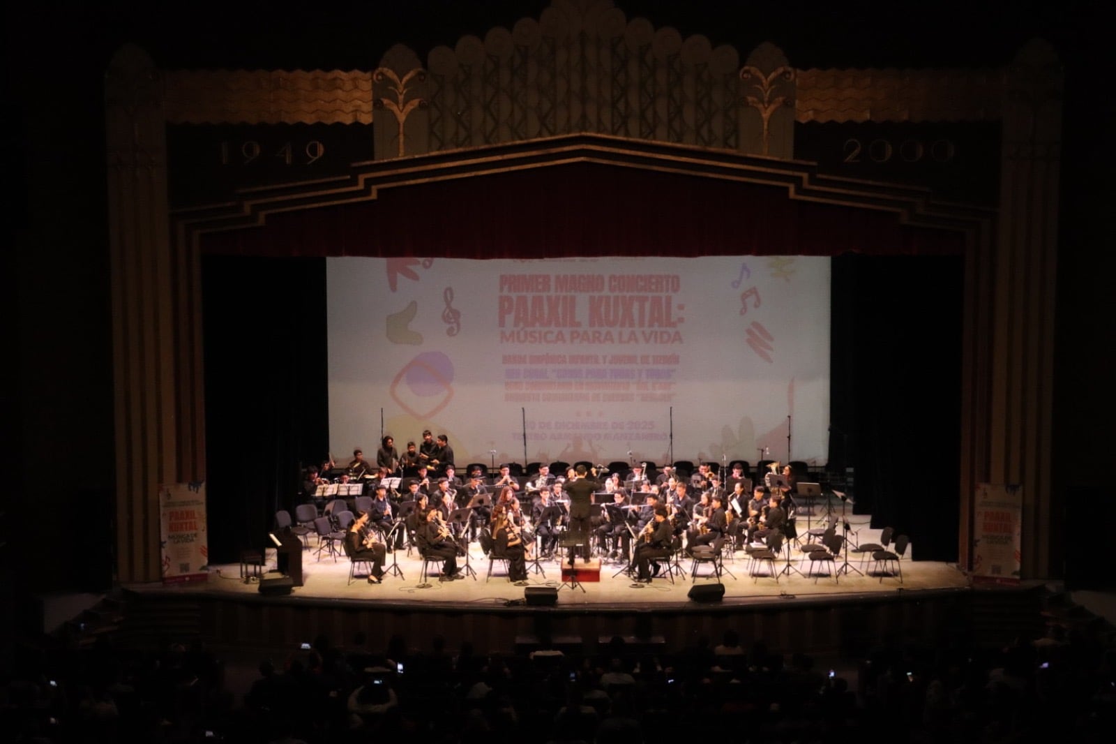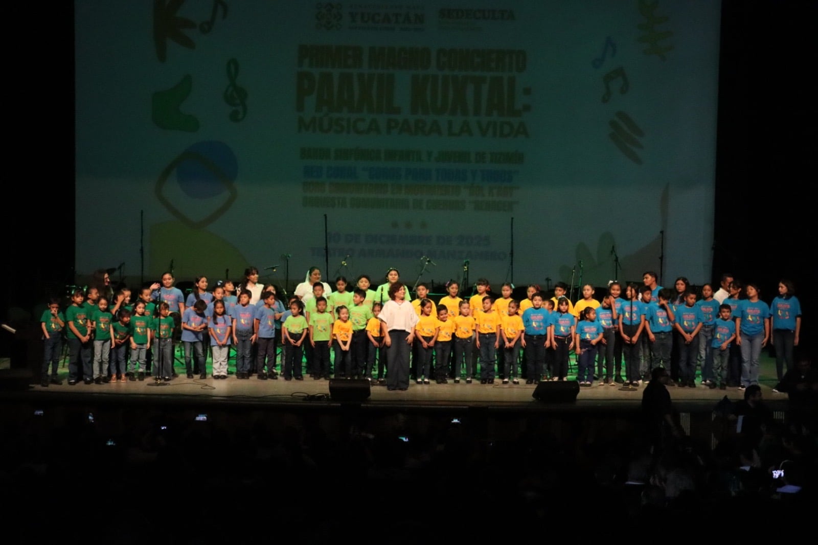 Las recién creadas Banda Sinfónica Infantil y Juvenil de Tizimín y la Red de Coros para Todas y Todos, acompañadas del Coro Comunitario en Movimiento Óol K’aay y la Orquesta Comunitaria de Cuerdas Renacer, reunieron sus talentos por primera vez esta noche para integrar la Gran Orquesta Infantil y Juvenil Paaxil Kuxtal, en un concierto histórico para la cultura y el arte en el estado.