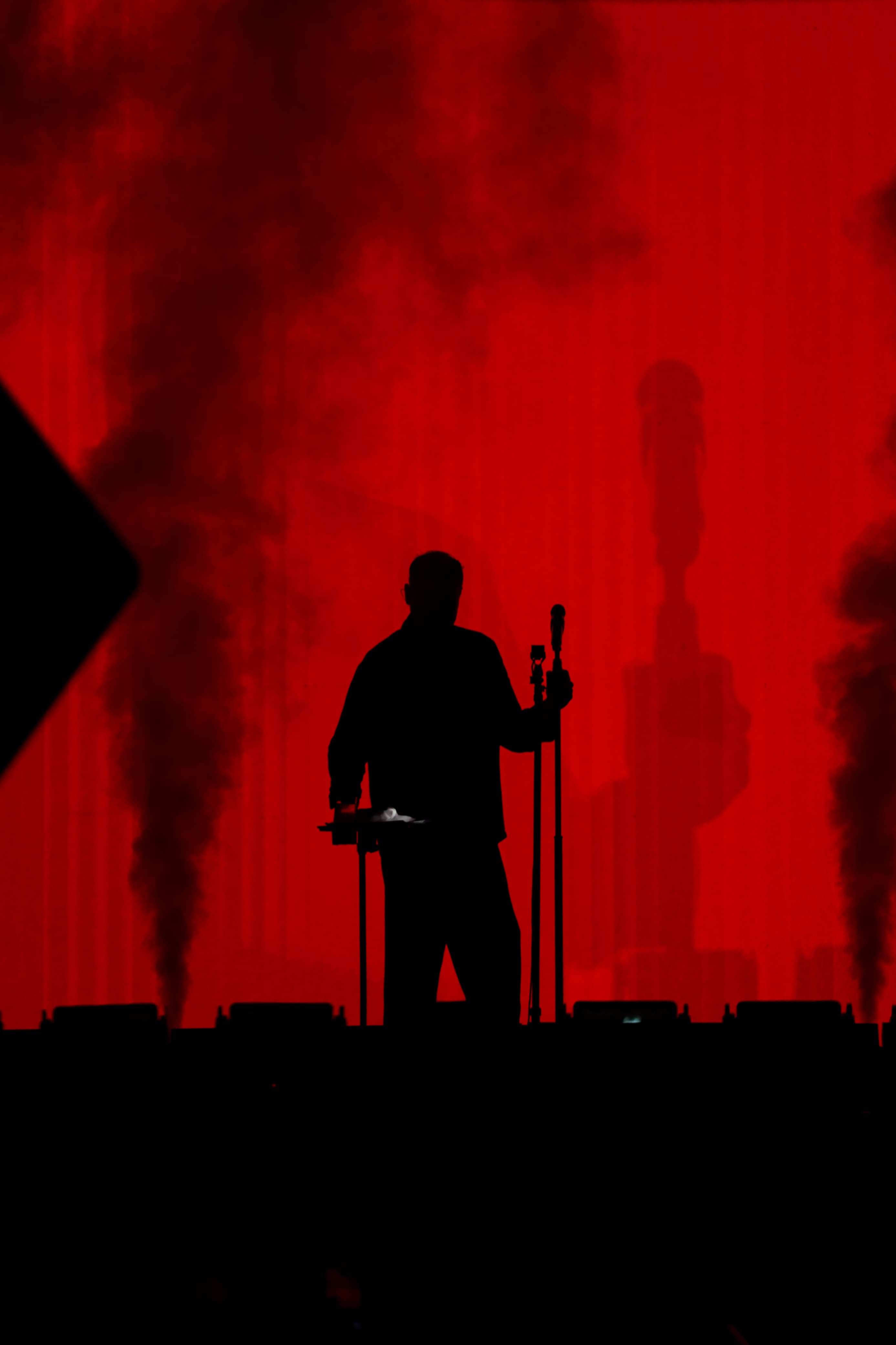 En un ambiente eléctrico, el trío subió al escenario saludando a la multitud que gritaba de emoción.