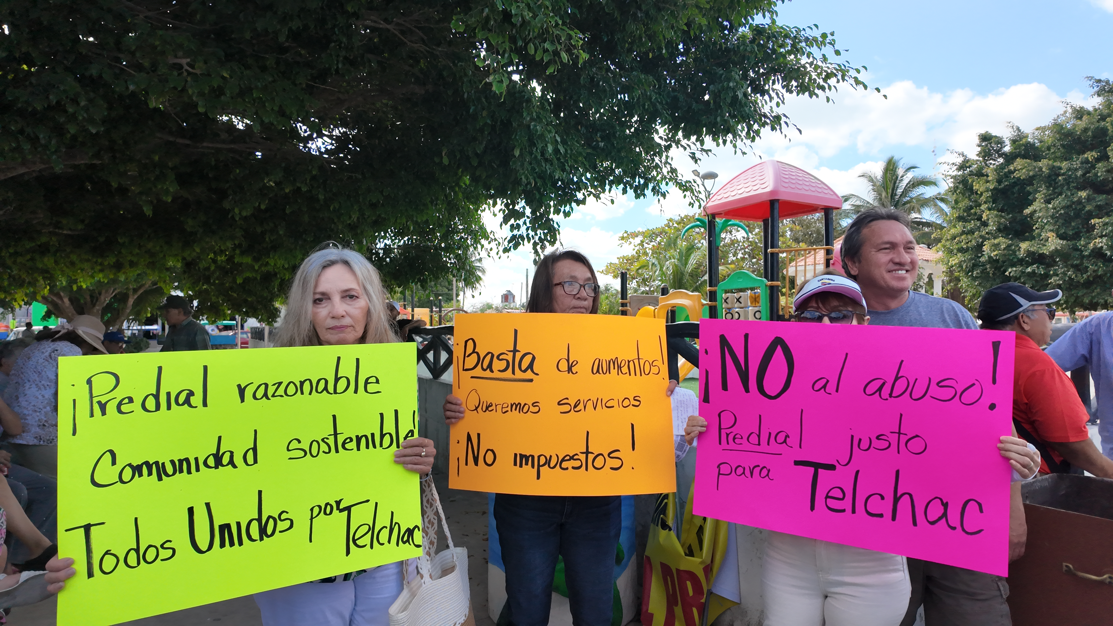 Entre un “No nos negamos a pagar, pero que sea justo” y un “Que paguen más los que más tienen”, el municipio de Telchac Puerto vivió un sábado agitado luego de que algunos propietarios se manifestaran frente a Palacio Municipal exigiendo una audiencia con el alcalde Alfonzo Nuñez para ajustar las tarifas del predial.