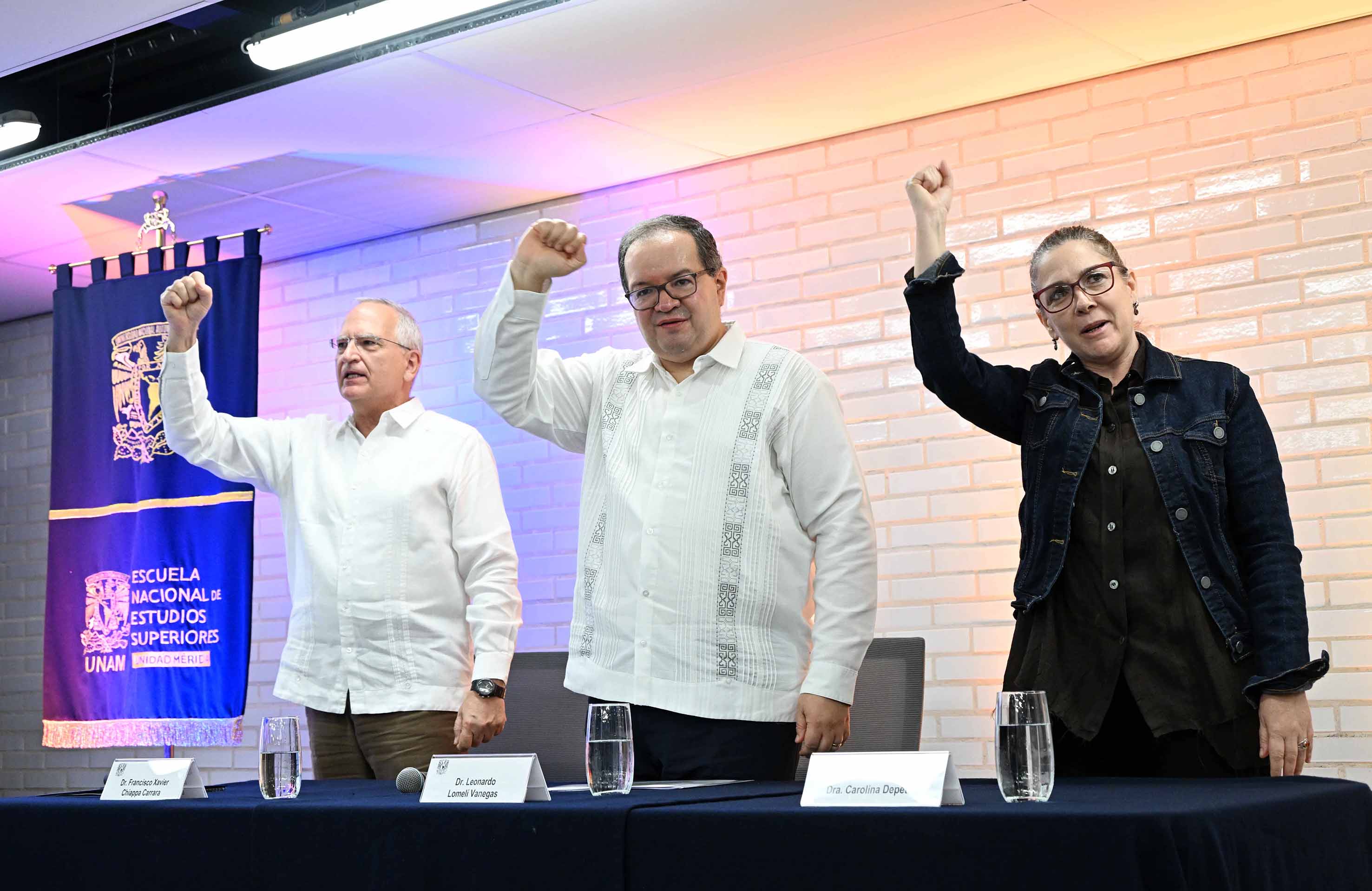 En el Aula Magna, en la que estuvo la directora del Centro Peninsular en Humanidades y Ciencias Sociales, y presidenta del Consejo de Dirección del campus Yucatán de la UNAM, Carolina Depetris, el director añadió que la ENES participa en los posgrados en Ciencias de la Sostenibilidad y en Ciencias del Mar y Limnología. También es sede de la Maestría en Gobierno y Asuntos Públicos, y en 2024 se aprobó su incorporación como sede académica de la Especialización en Bioquímica Clínica.
