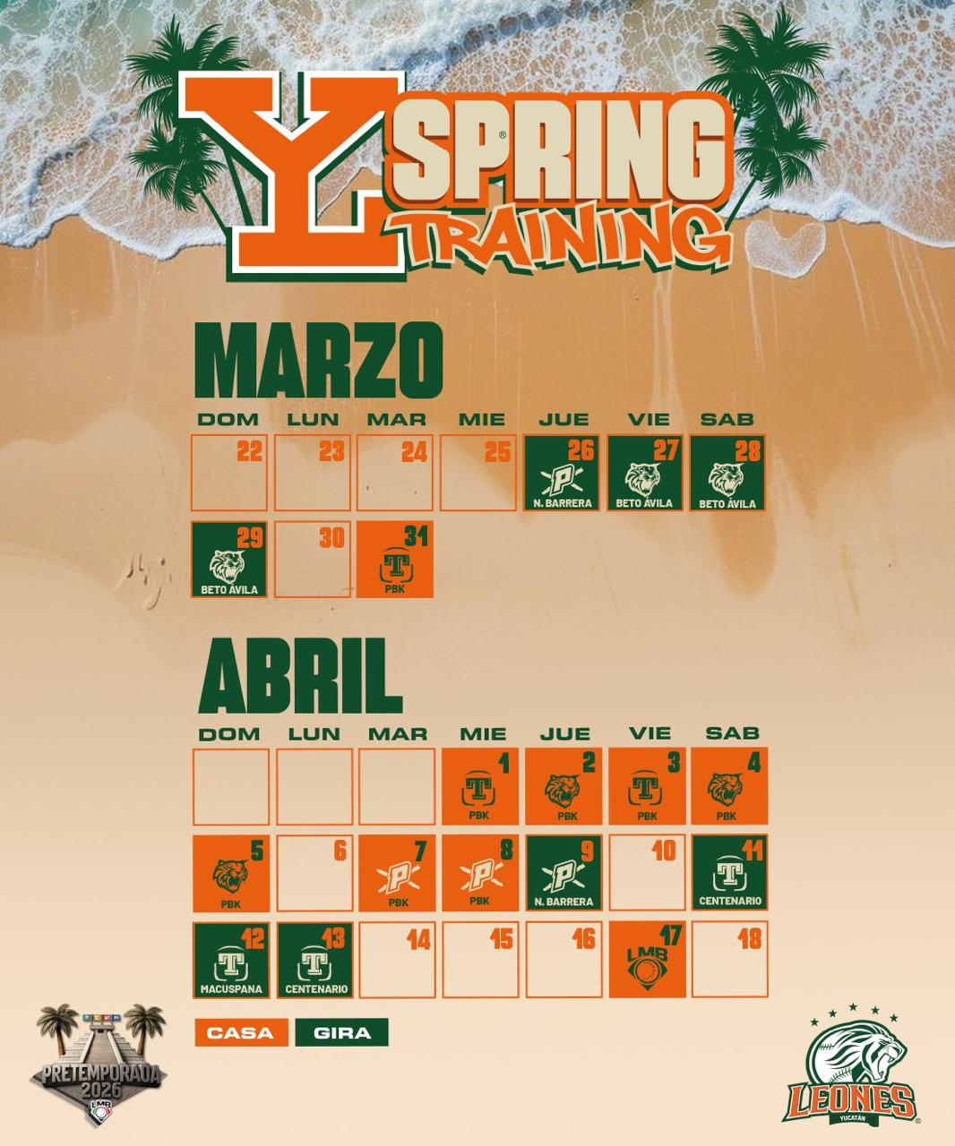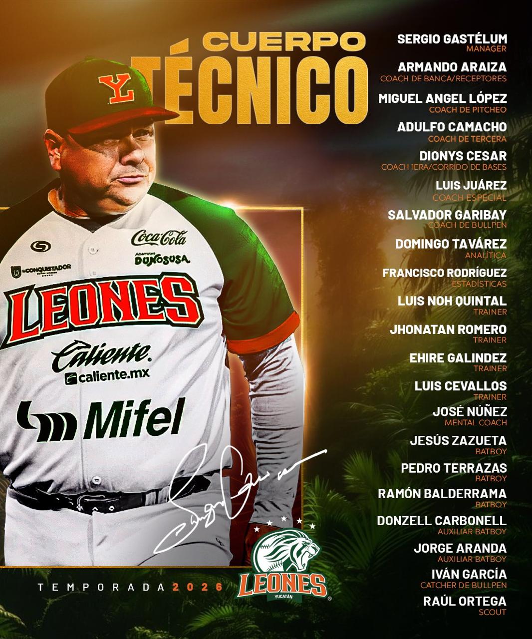 Asimismo, en el róster de pretemporada de los rugidores hay un yucateco, el receptor Jafet Ojeda, y un quintanarroense, Fabián Urbina, también cátcher. El zurdo Diego Galué, igualmente de Quintana Roo, fue cedido a préstamo por la campaña 2026 a los Tigres.