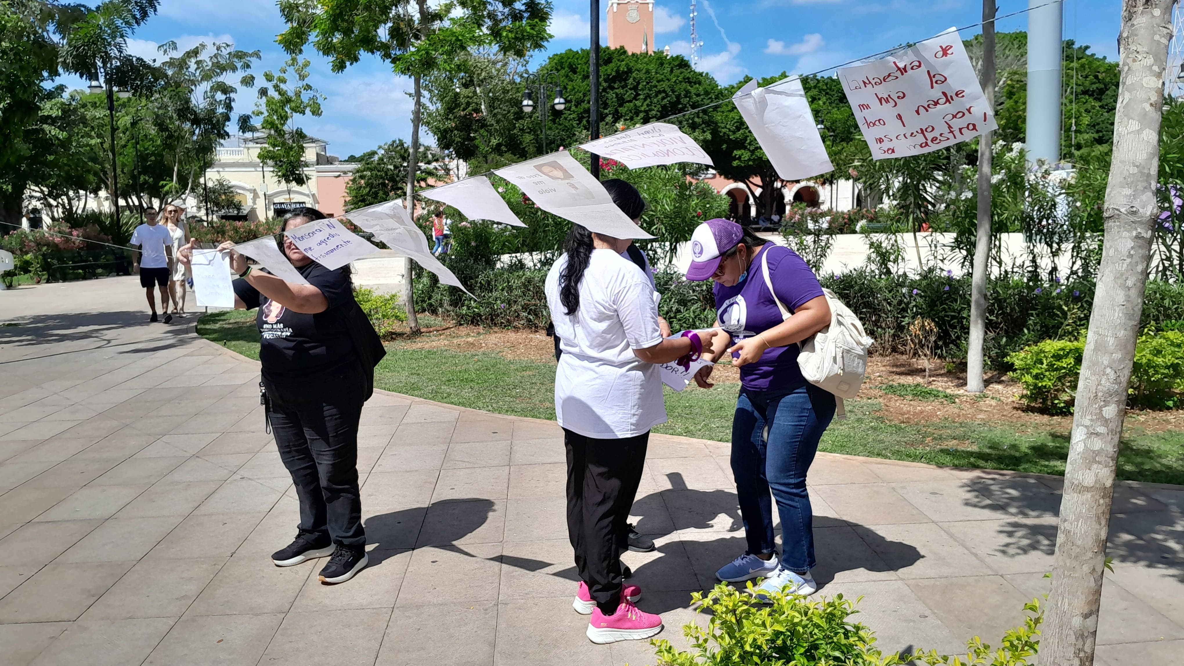 Como parte de las manifestaciones por la conmemoración del Día Internacional de la Mujer, 8M, víctimas de violencia vicaria realizaron un “tendedero” para exhibir a deudores alimentarios, padres abandónicos y hombres violentadores en general en el Centro Histórico de Mérida.