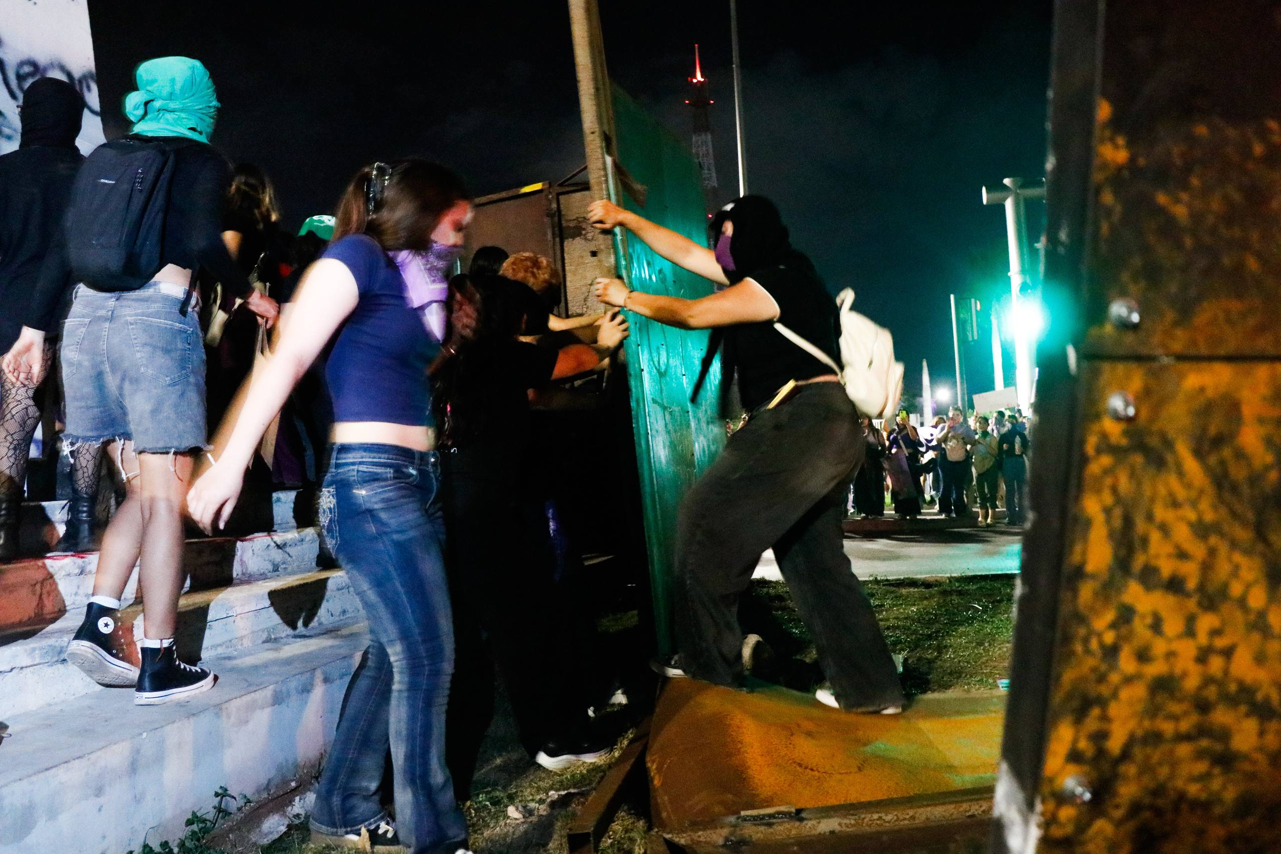 A pesar de estar "blindado" con vallas metálicas, el bloque negro consiguió derribar poco a poco la protección para dar paso a todas las manifestantes que quisieran ingresar.