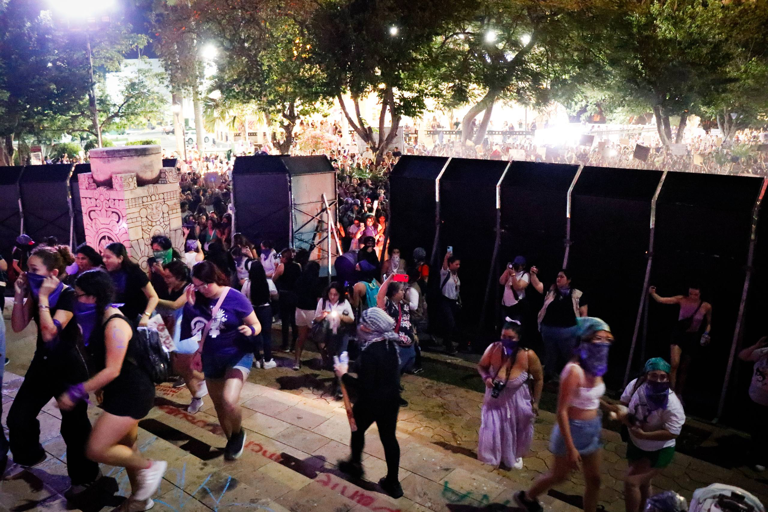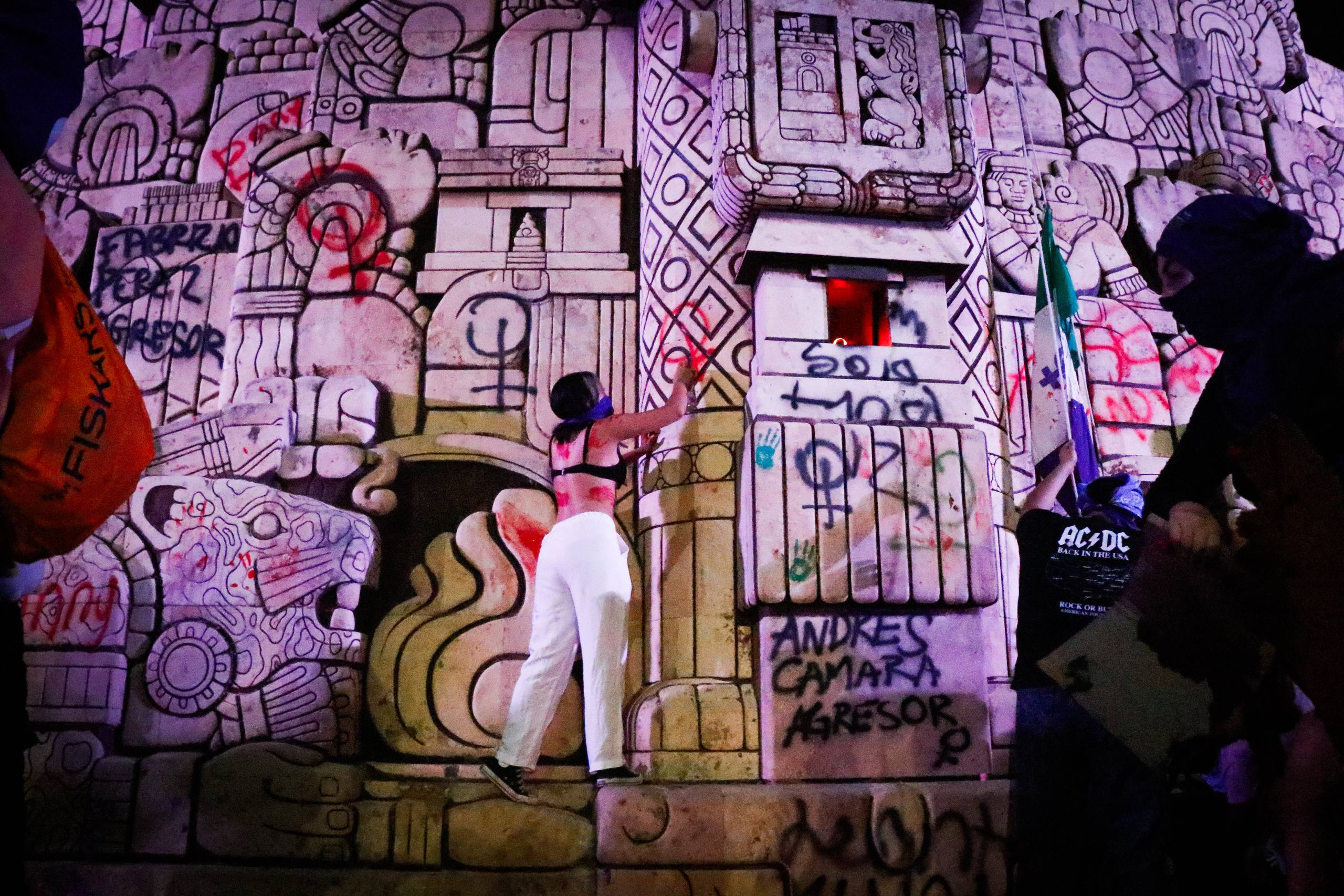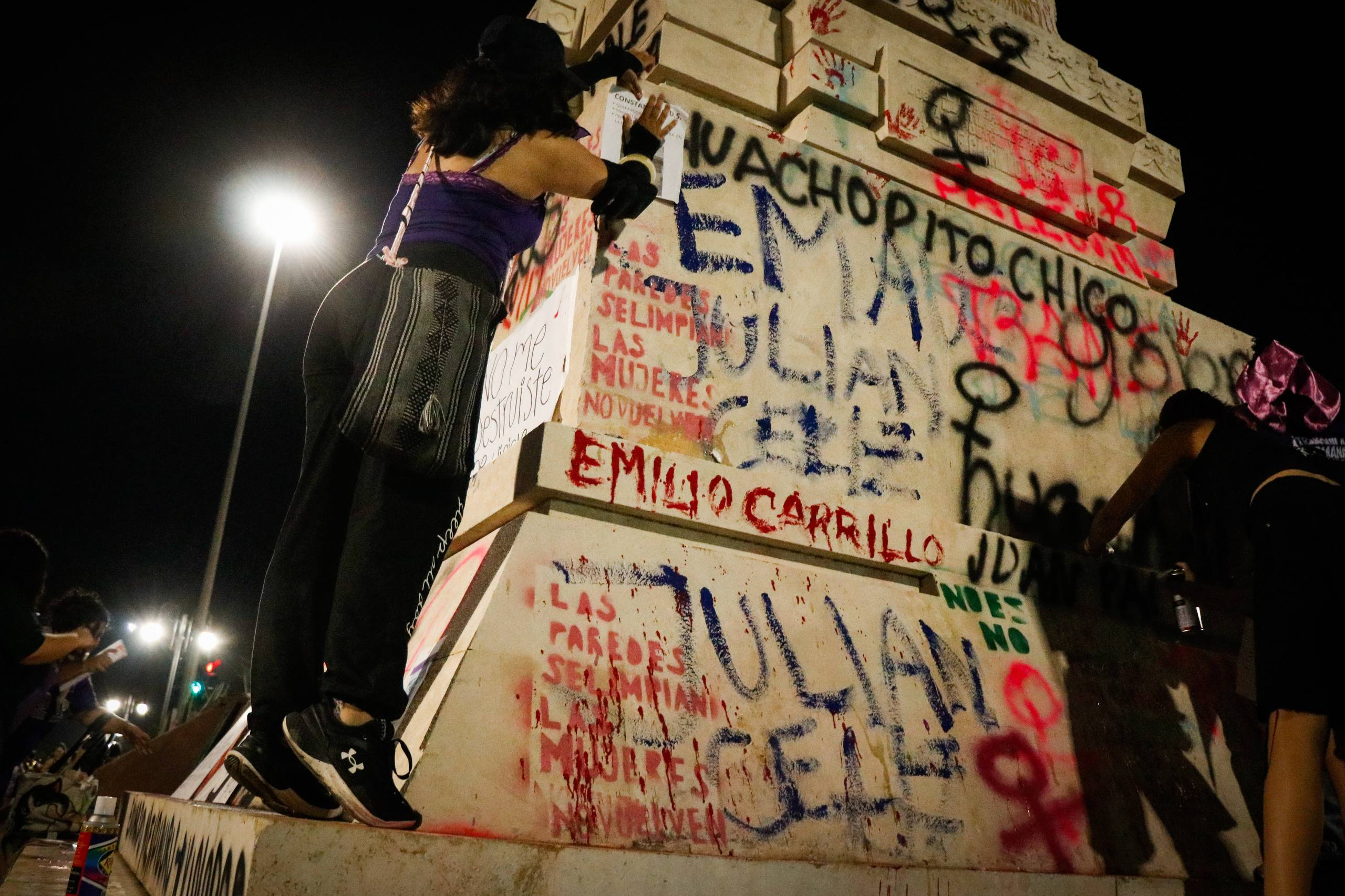 Al llegar al primer monumento la euforia comenzó: el bloque negro logró derribar las vallas que protegían al busto dedicado a Felipe Carrillo Puerto y comenzó con las intervenciones.