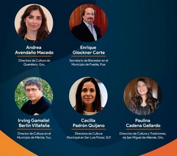 Los invitados a dialogar son Cecilia Padrón Quijano, Paulina Cadena Gallardo e Irving Berlín Villafaña, quienes se desempeñan como Directores de Cultura Municipal de San Luis Potosí, de Cultura y Tradiciones de San Miguel Allende, Guanajuato, y de Cultura del Ayuntamiento de Mérida, respectivamente. También los acompañarán Andrea Avendaño Macedo, Secretaria de Cultura del Municipio de Querétaro y Enrique Glockner Corte, Secretario de Bienestar en el Municipio de Puebla.