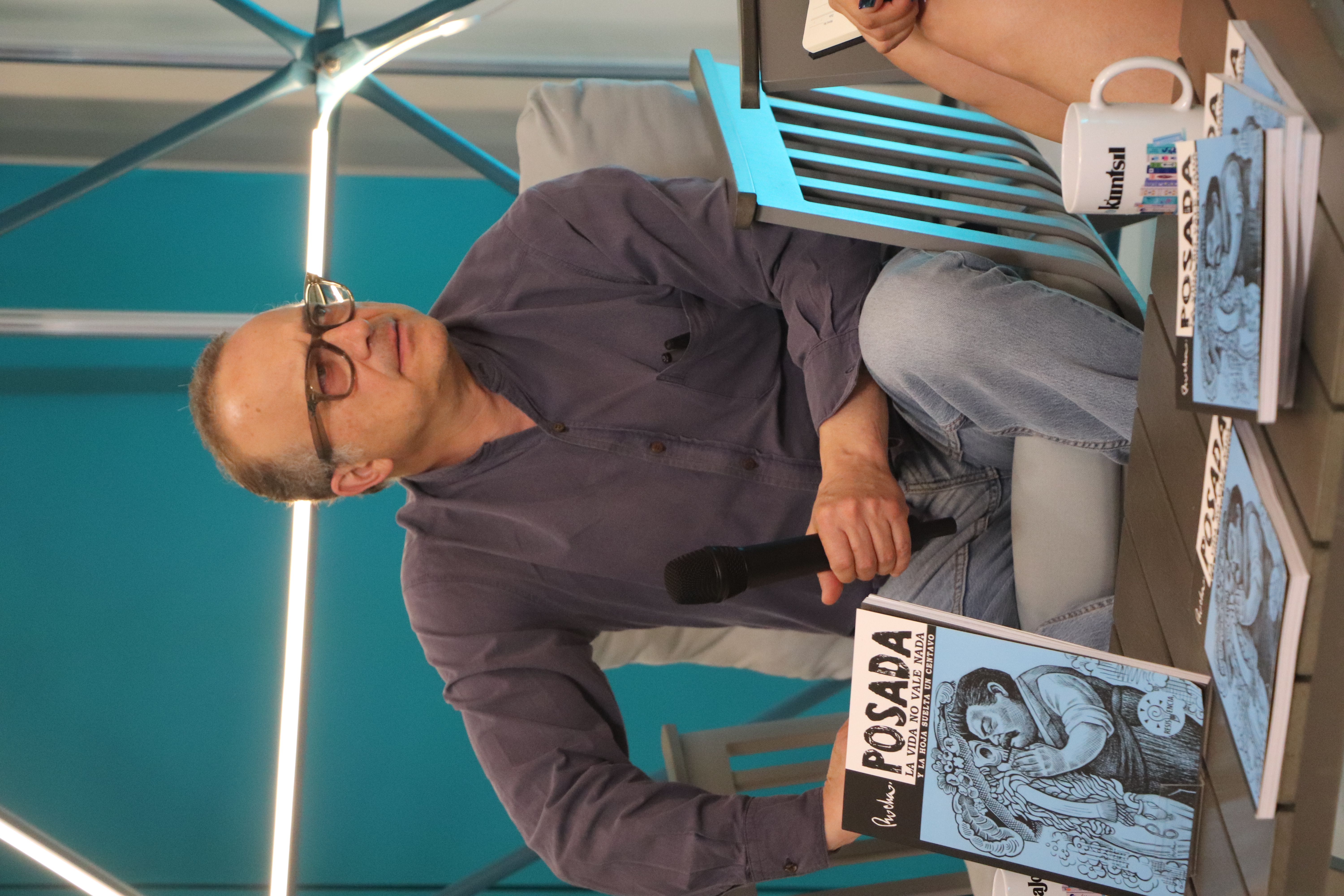 La Cúpula, el stand de La Jornada Maya en la Filey 2026, fue sede de un encuentro entre dos grandes de la ilustración: José Guadalupe Posada y Rocha, este último realizando un homenaje al primero a través de una novela gráfica que más bien califica como historieta.