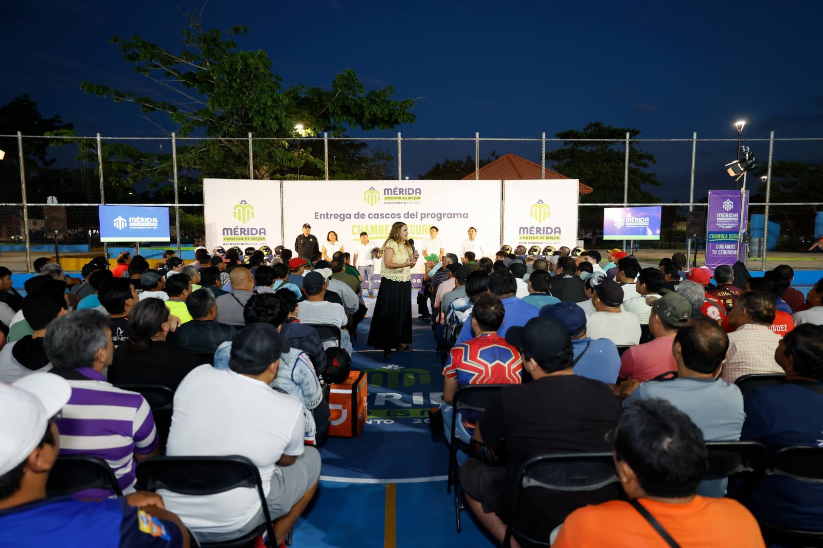 Para que más personas que utilizan motocicleta como fuente de trabajo estén más seguros y regresen con bien a casa, la presidenta municipal de Mérida, Cecilia Patrón Laviada, realizó la segunda entrega del año de cascos gratuitos con certificación DOT en la que fueron beneficiados 185 meridanas y meridanos.