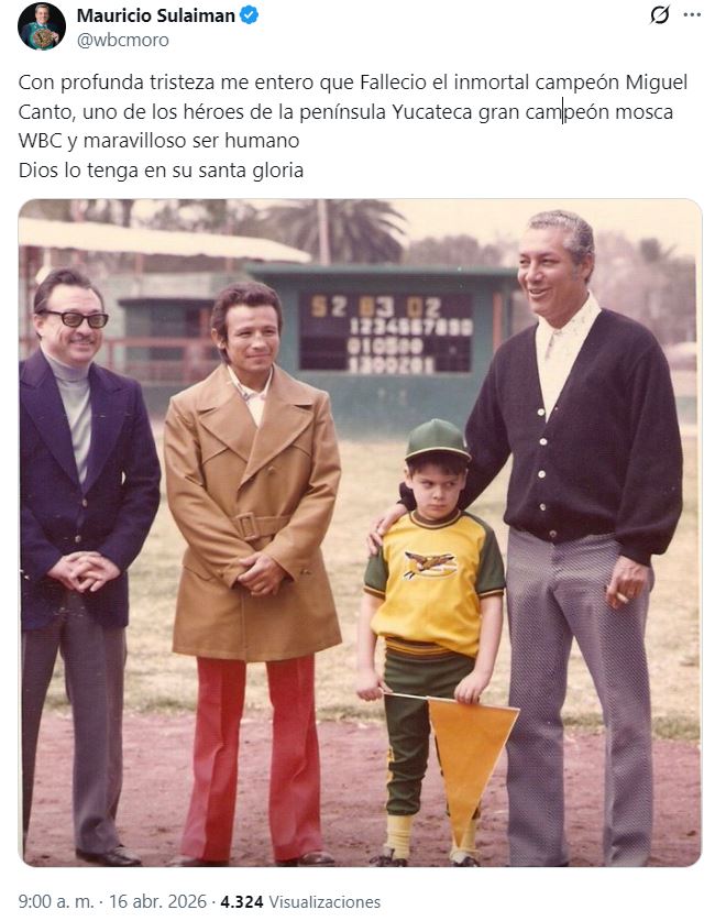 Otro fue el empresario mexicano Mauricio Sulaiman, quien desde el 11 de febrero de 2014, preside el Consejo Mundial de Boxeo (CMB o WBC, por sus siglas en inglés), una de las cuatro principales organizaciones internacionales de boxeo: "Con profunda tristeza me entero que Fallecio el inmortal campeón Miguel Canto, uno de los héroes de la península Yucateca gran campeón mosca WBC y maravilloso ser humano. Dios lo tenga en su santa gloria".