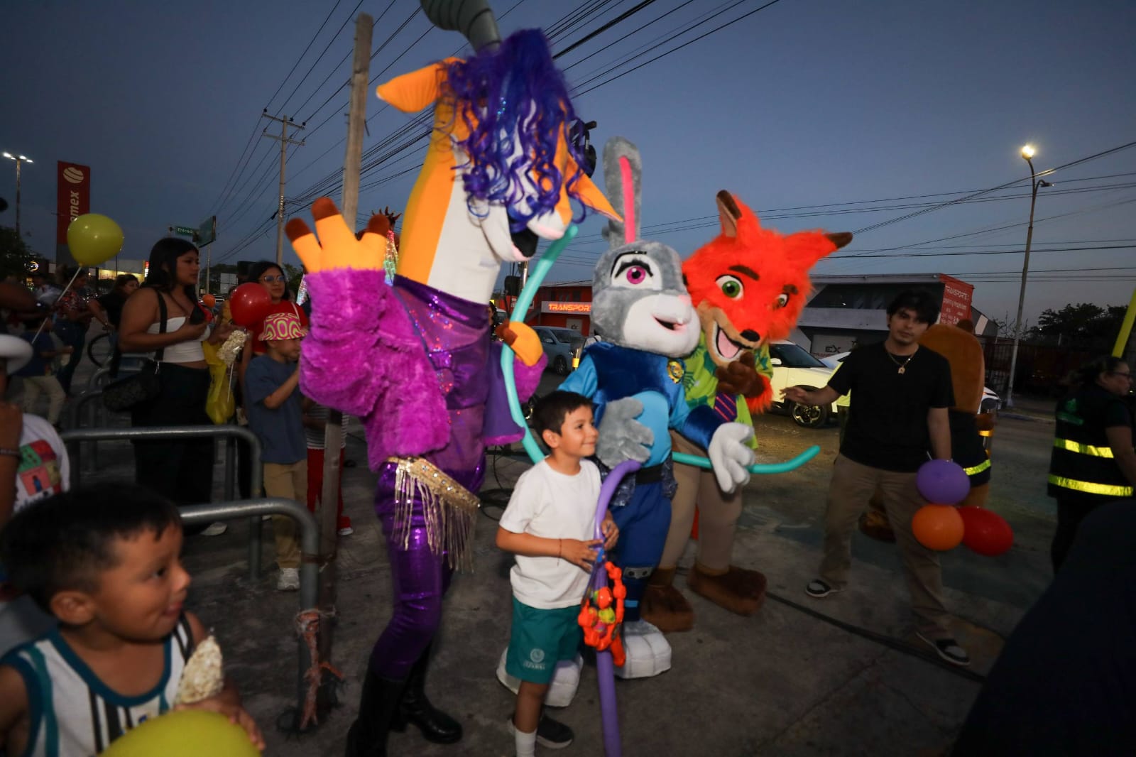 La jornada de ayer incluyó una activación especial en el crucero de Soriana Canek con Avenida Mérida 2000, donde colaboradores del Ayuntamiento repartieron juguetes, palomitas y bolis, acompañados de personajes infantiles que con baile, entre luces y globos, llevaron alegría a las familias.}