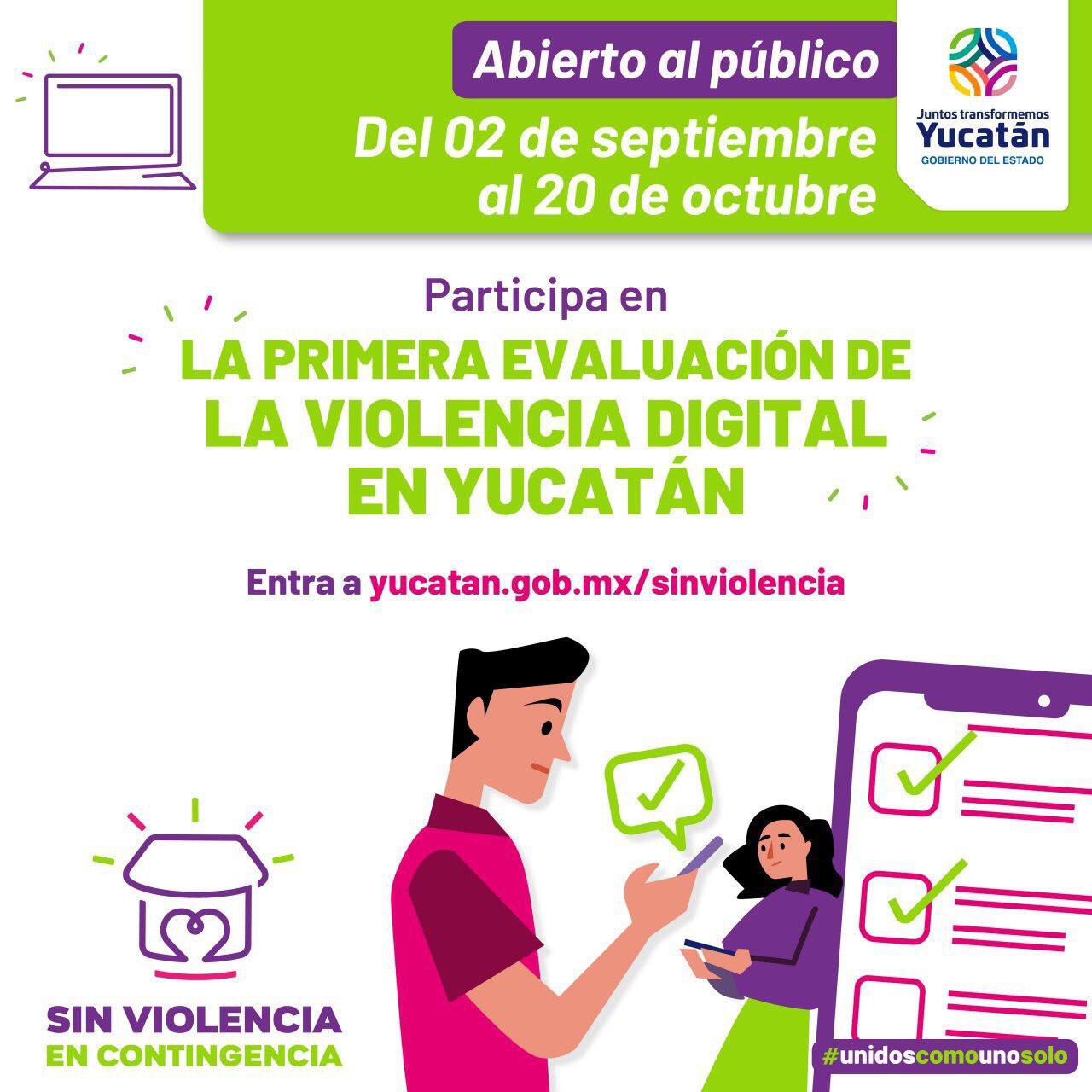 En el marco de la campaña “Sin violencia en contingencia”, Cepredey invita a las y los yucatecos mayores de edad a participar en esta evaluación, sobre todo si han vivido burlas, robo de identidad, extorsión o acoso en línea. La violencia digital puede afectar a cualquier persona; genera consecuencias sicológicas, emocionales y sociales, y limita el pleno ejercicio y disfrute de los derechos humanos.