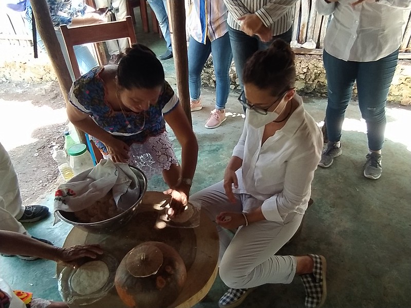 Incluso enseñó a la funcionaria cómo hacer tortillas a mano.