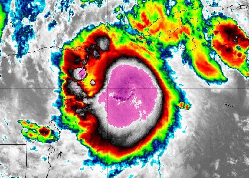 El fenómeno se localiza a 192 km del suroeste de Tizimín y se desplaza hacia el oeste-noroeste a una velocidad de 28 km/h con vientos de 185 km/h.