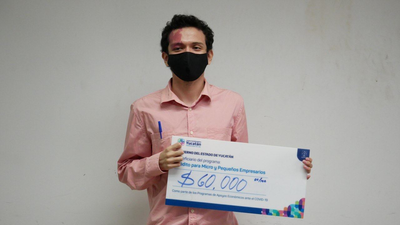 Por otro lado, el emprendedor Andrés Roberto Guzmán Núñez también recibió un apoyo económico por la cantidad de 60 mil pesos, que serán utilizados para obtener la maquinaria necesaria para realizar el bordado y sublimación de los cubrebocas que se elaboran en su taller textil ubicado en el municipio de Chemax.