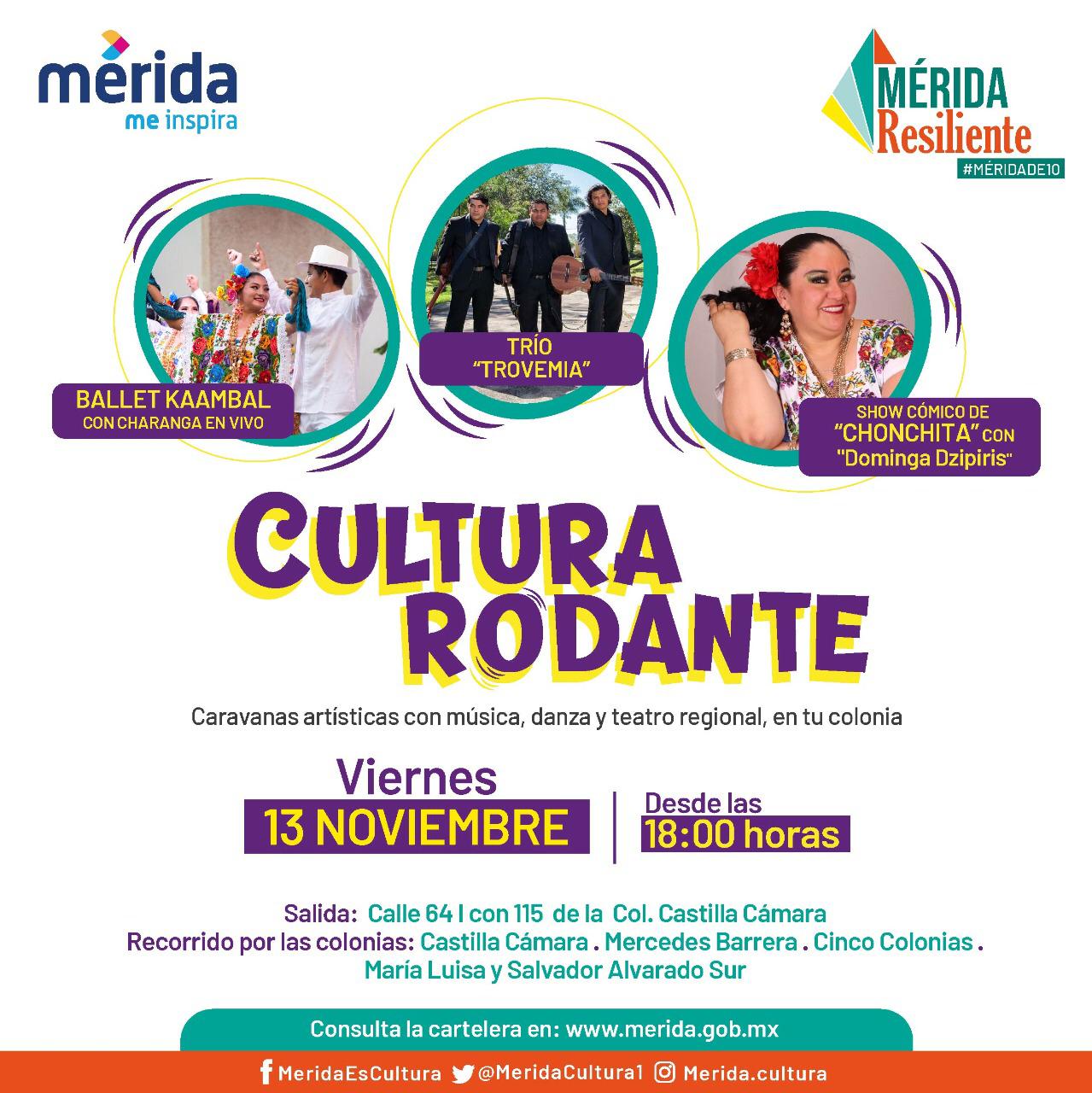El programa inicia mañana viernes 13 de noviembre, a las 18 horas, en la calle 64 i con 115, de la colonia Castilla Cámara. El recorrido será en un vehículo acondicionado sobre el que estarán actuando artistas invitados, comenzando con el Trío Trovemia, el Ballet Kaambal con charanga en vivo y el show cómico de “Chonchita” y Dominga Dzipiris.
