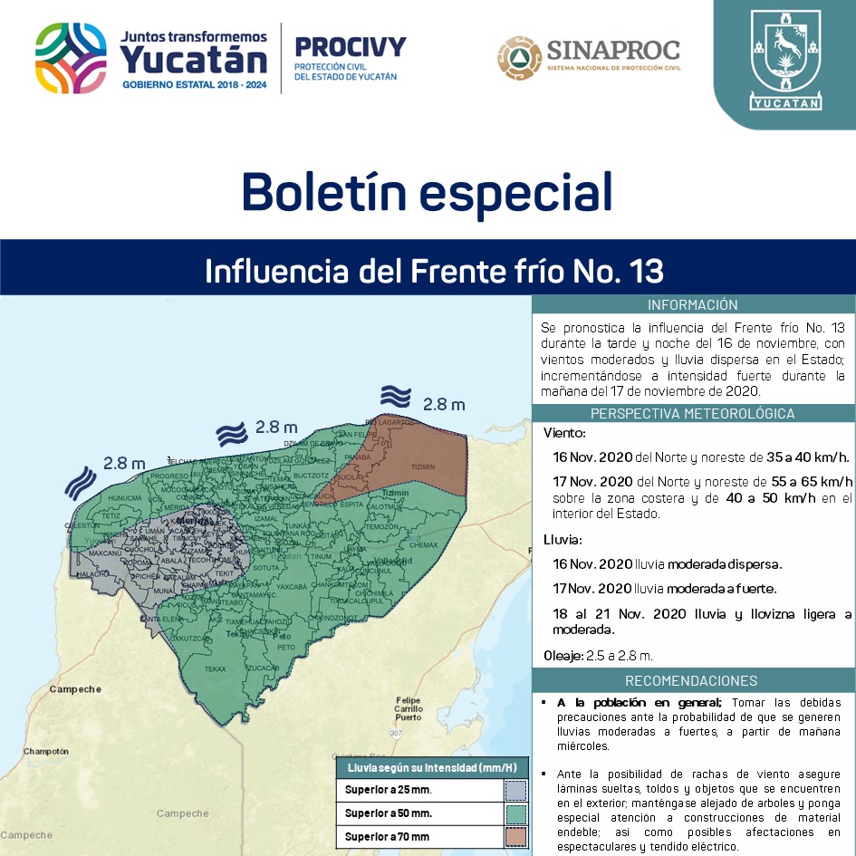 Como parte de su trabajo de vigilancia permanente, el Centro Estatal de Monitoreo y Alertamiento de la dependencia informó sobre el acercamiento del sistema y pronosticó un comportamiento estacionario en la Península, por lo que llamó a la población a estar pendiente de sus posibles efectos.