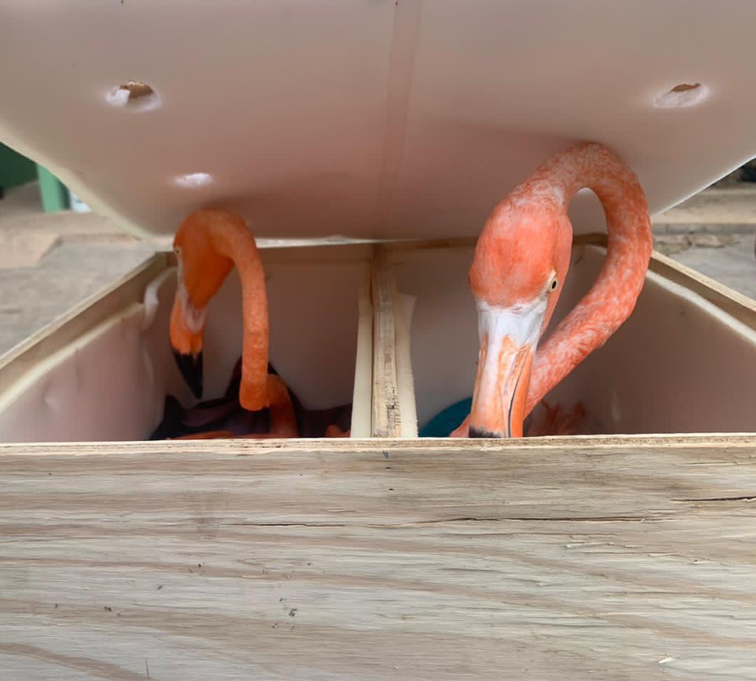 Personal de la Procuraduría Federal de Protección al Ambiente (Profepa) en coordinación con elementos de la Guardia Nacional destacados en el Aeropuerto Internacional “Lic. Manuel H. Crescencio Rejón”, detuvieron el envío de tres cajas de madera detectadas en una empresa de mensajería en cuyo interior había seis ejemplares de la especie Flamenco americano -Phoenicopterus ruber-, que se encuentran enlistados categoría de especie Amenazada dentro de la Norma Oficial Mexicana NOM-059-SEMARNAT-2010; de ellos cinco ejemplares se recuperaron vivos. Presentan deshidratación y alas cortadas.