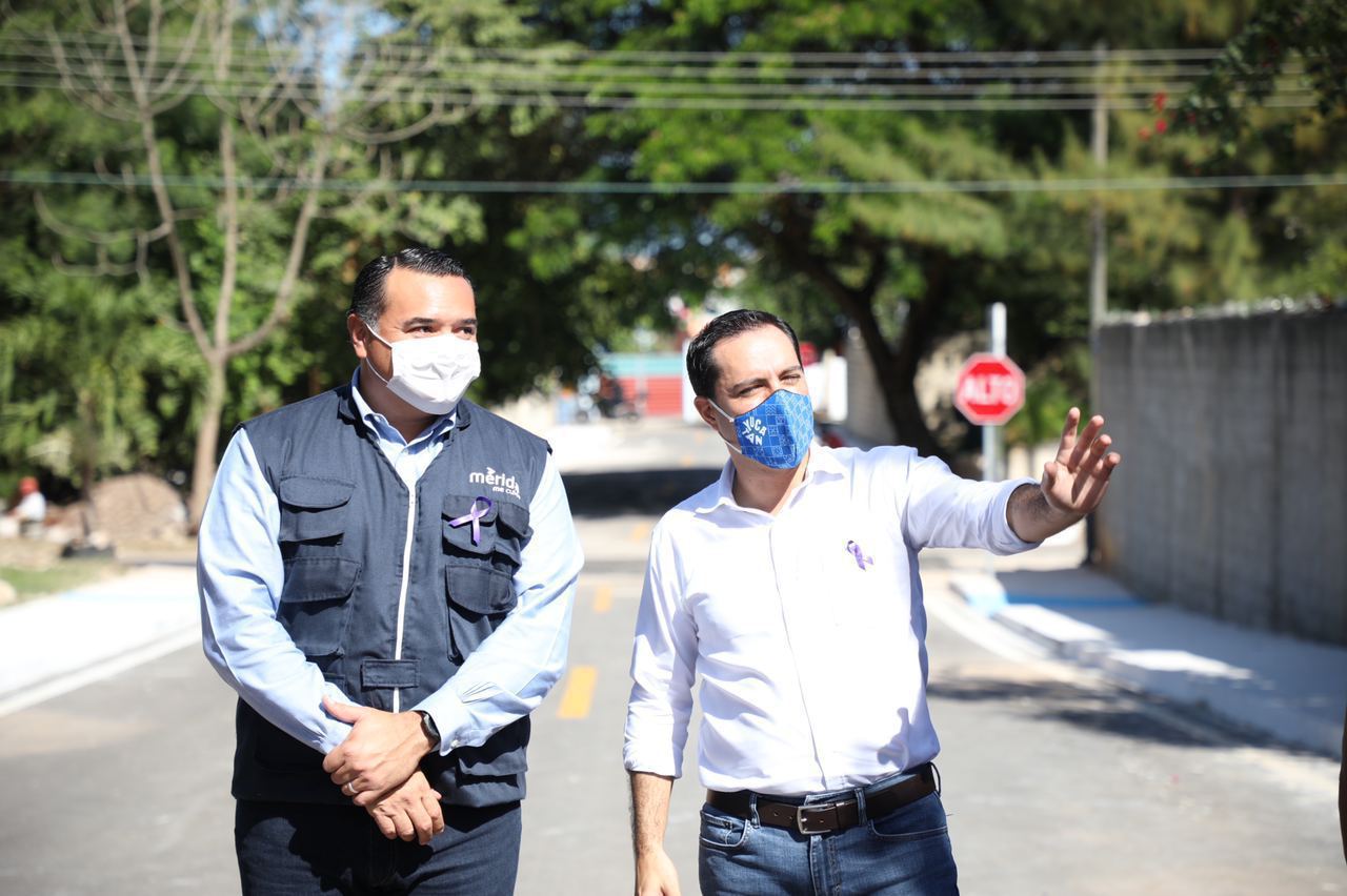 Vila Dosal y Barrera Concha constataron en la colonia Salvador Alvarado Sur algunas de las nuevas vialidades realizadas dentro de esta Declaración, obras que, en conjunto, representan una inversión de casi 124 millones de pesos y benefician a habitantes de 18 colonias y fraccionamientos de Mérida con entornos más seguros y limpios.