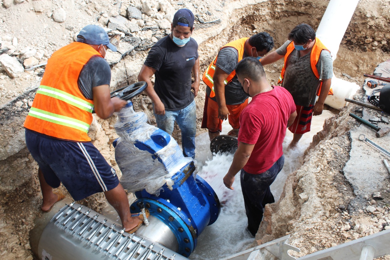 Al supervisar los avances, el titular de la dependencia, Sergio Augusto Chan Lugo, explicó que las labores que se llevan a cabo en la vía en construcción incluyen la colocación de una válvula de 16 pulgadas en una tubería de 30 pulgadas, proveniente de la planta Mérida IV, para distribuir el vital líquido en los fraccionamientos Sian Ka'an y Herradura II, actualmente abastecidos por los cárcamos de Ciudad Caucel.
