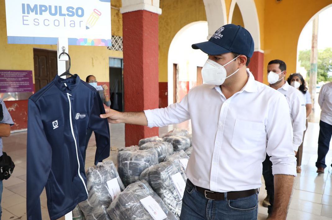 En gira de trabajo por esta demarcación, Vila Dosal continuó con la entrega de estas prendas, elaboradas por 76 productores textiles del estado, y también siguió otorgando las becas económicas, correspondientes a los primeros dos bimestres del actual ciclo escolar, que representan una ayuda para 16 mil 122 alumnos de primaria y secundaria de Yucatán.