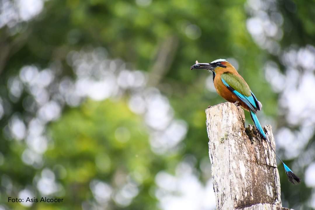 También, como dato curioso agregó que su nombre es onomatopéyico porque el sonido que hace es “mot mot” y se le oye cantar antes de las 11 de la mañana mientras mueve la cola como un péndulo, lo que le da el nombre también de “pájaro relojero”.
