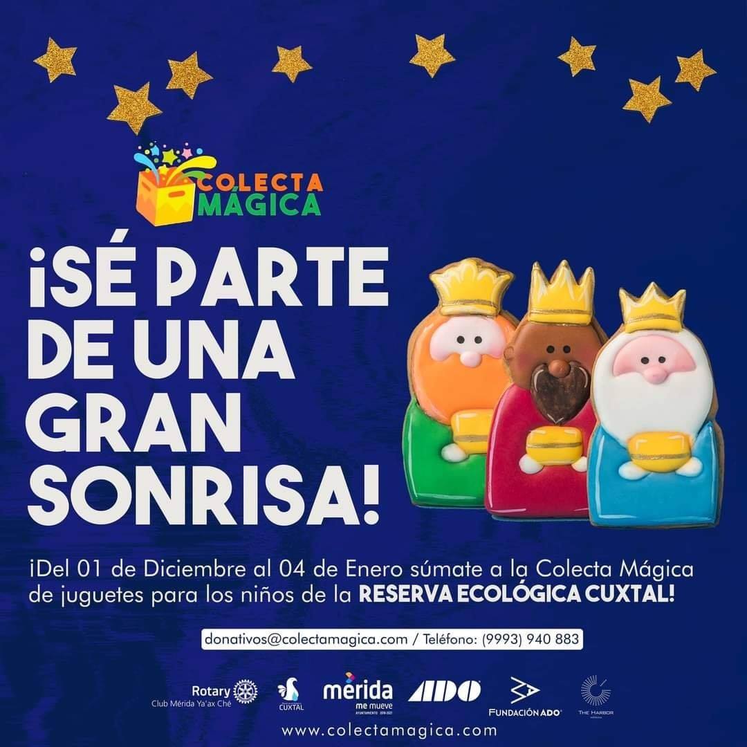 Con el fin de llevar sonrisas y alegrías a cientos de niños estas fiestas de fin de año, la Reserva Ecológica de Cuxtal, junto al Club Rotario Mérida Ya'ax Ché, lanzaron la Colecta Mágica. El fin de esta iniciativa es recaudar 2 mil 500 juguetes para niños entre 0 y 10 años que no sean bélicos y no utilicen baterías.