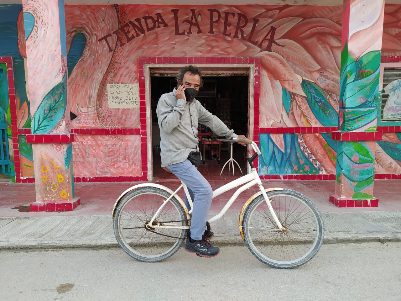 En una de las calles principales, Alcázar hizo un pequeño espacio para brindar una entrevista para La Jornada Maya, que a la vez es una invitación para que más personas acudan a Yucatán, específicamente a El Cuyo.