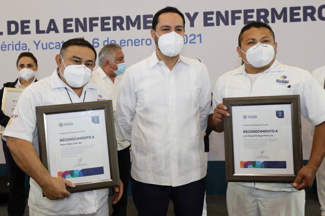 En un evento realizado en el Centro Internacional de Congresos (CIC), por la conmemoración del Día Nacional de la Enfermera y Enfermero, este 6 de enero, el gobernador de Yucatán Mauricio Vila Dosal entregó reconocimientos por el esfuerzo, empeño y vocación de servicio a 33 enfermeros y enfermeras del estado, quienes han demostrado, especialmente ante la pandemia del coronavirus, que su labor ha sido imprescindible para proteger la salud de los yucatecos.