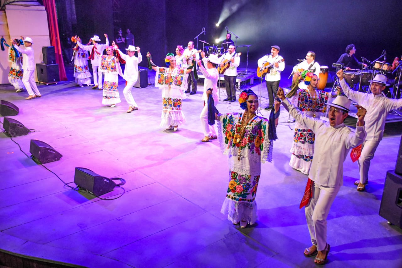 Orgullosos de la cuna que los vio nacer, Los Juglares entonaron Somos meridanos, a la que se unieron seis parejas del Ballet Folclórico del Ayuntamiento de Mérida, mientras los jóvenes talentos regresaron al escenario a interpretar pequeñas estrofas del tema para cantarle con amor a nuestra ciudad.