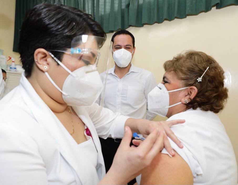Uno de los primeros hospitales que reportó la aplicación de la dosis fue en el Hospital General Agustín O' Horan, en donde los enfermeros María Andrea Ventura y Pedro Pablo Chel Yah, fueron los primeros enfermeros en Yucatán en recibir la vacuna.