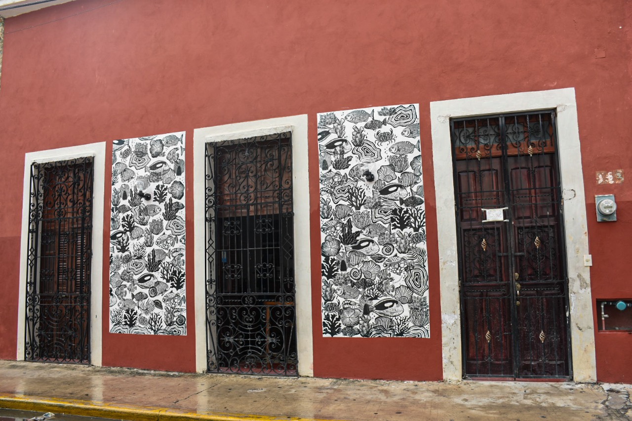 En el primer predio se aprecian intervenciones en el muro con técnica de estampado, con algunos elementos marinos, y en el segundo una decoración con cestería con flores, jícaras y listones de colores.
