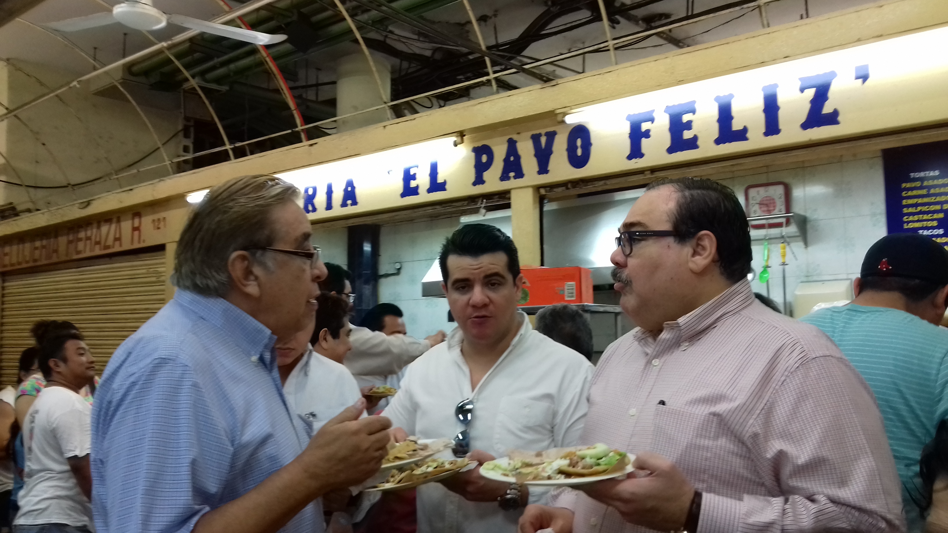 El diputado federal estuvo acompañado durante el recorrido por su esposa María Elena Granados Castellanos, y amigos de su vida. Primero fueron a la taquería El Pavo Feliz, donde consumieron las tortas, tacos, panuchos y salbutes que ahí se sirven; después caminaron hasta el Museo de la Ciudad, pero a mitad del camino observó que la esquina de Las Dos Caras ha perdido el emblemático mural que la nombraba, consecuencia del paso del tiempo.