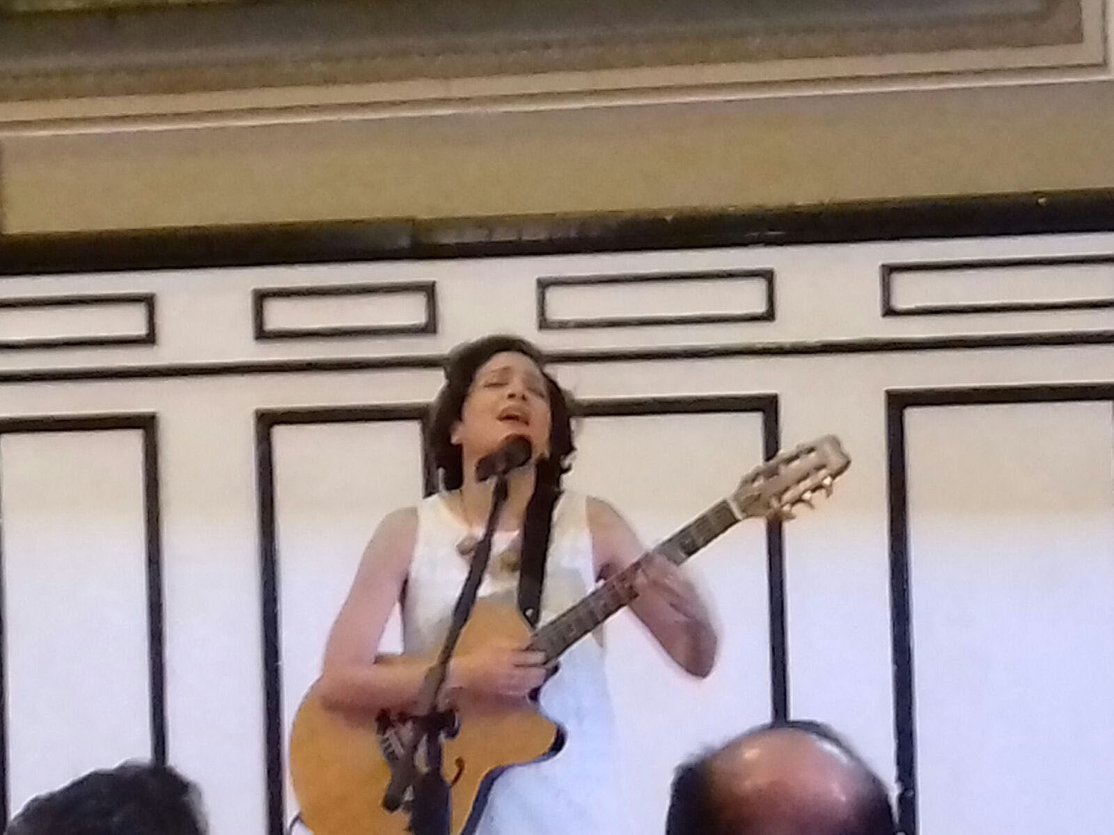 En la víspera de la Noche Blanca que organiza el municipio meridano, se llevo a cabo el acto ante un público conformado por funcionarios de la administración estatal, así como por empresarios, músicos y artistas de todas las áreas. La popular compositora e intérprete ejecutó dos canciones: [i]María bonita[/i], de Agustín Lara y [i]Vámonos negrito[/i], de su propia autoría.