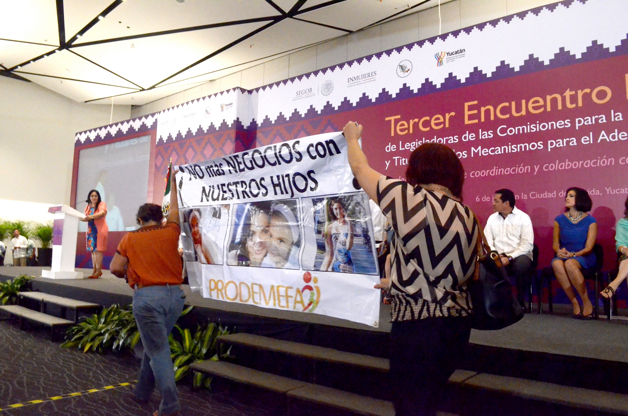 El hecho ocurrió durante el tercer Encuentro Nacional de Legisladoras, que se desarrollaba en el Centro de Convenciones Yucatán Siglo XXI. Unas 10 mujeres que aseguran haber han sido afectadas por el sistema de procuración de justicia en diversos casos, que van desde abuso sexual hasta pérdida de la patria potestad de sus hijos, ingresaron al salón donde se desarrollaba el encuentro, enarbolaron cartulinas con sus demandas y gritaron consignas. Una de ellas subió al podio e intentó arrebatarle el micrófono a Zapata Bello.