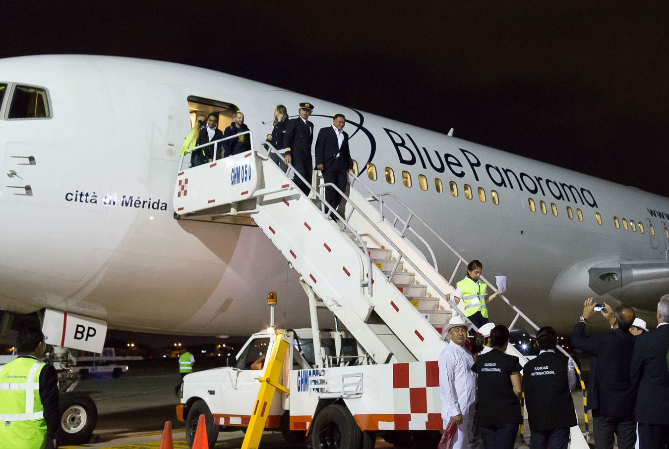 Procedente de Milán, el Boeing 767-300 de la compañía Blue Panorama aterrizó en el Aeropuerto Internacional de Mérida “Manuel Crescencio Rejón” a las 19:38 horas. Al ofrecer un mensaje tras descender del avión que lleva el nombre Città di Mérida, el gobernador de Yucatán Rolando Zapata Bello destacó que “los aviones Boeing 767-300 de Blue Panorama, además del transporte de pasajeros, también contemplan la carga de mercancía. Es decir, las empresas yucatecas ya cuentan con una plataforma para incursionar en el espacio económico de la Unión Europea”. Asimismo, expuso que éste es el primer vuelo comercial directo entre Europa y la entidad en casi 40 años, con la capacidad de transportar pasajeros y carga comercial hasta por cuatro toneladas. En los años setenta, existía uno de estas características que trazaba su ruta desde Mérida hasta Frankfurt, Alemania.