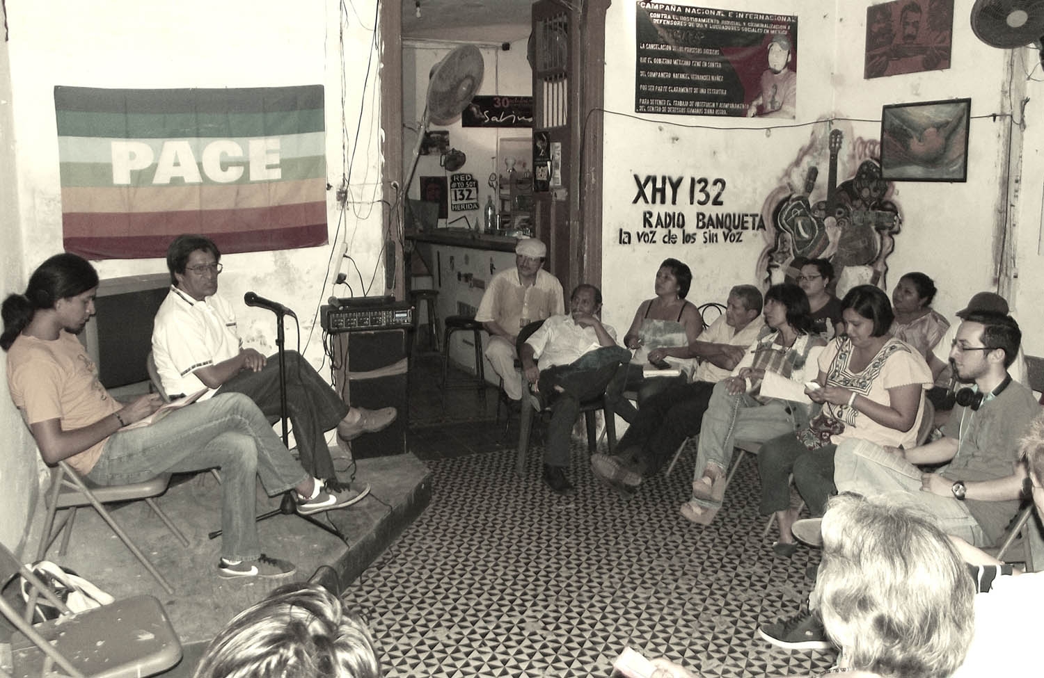 La noche del jueves, alrededor de 50 personas se reunieron para sostener un diálogo abierto en el que se abordó gran parte de la problemática por la que atraviesa nuestro país en estos momentos y de la cual la península de Yucatán no es ajena. Relajado, sonriente y entusiasta, Julio Hernández llegó en punto de las ocho de la noche y tomó el micrófono para iniciar el encuentro refiriéndose a los movimientos sociales que están presentes en diversas zonas de la República Mexicana. »Lo que vemos ahora es el resultado de la acumulación de largos errores en el manejo de los conflictos. A ello hay que agregar que, al estilo de Francisco Franco, al terminar su mandato Peña dejará un México atado y bien atado con Eduardo Medina Mora al frente de la Suprema Corte de Justicia de la Nación, Arely Gómez González como titular de la Procuraduría General de la República y además, con las reformas estructurales en aspectos estratégicos como el energético y el de telecomunicaciones. Se trata de un proyecto a largo plazo que está abatiendo las posibilidades de lucha social«, señaló a los asistentes.