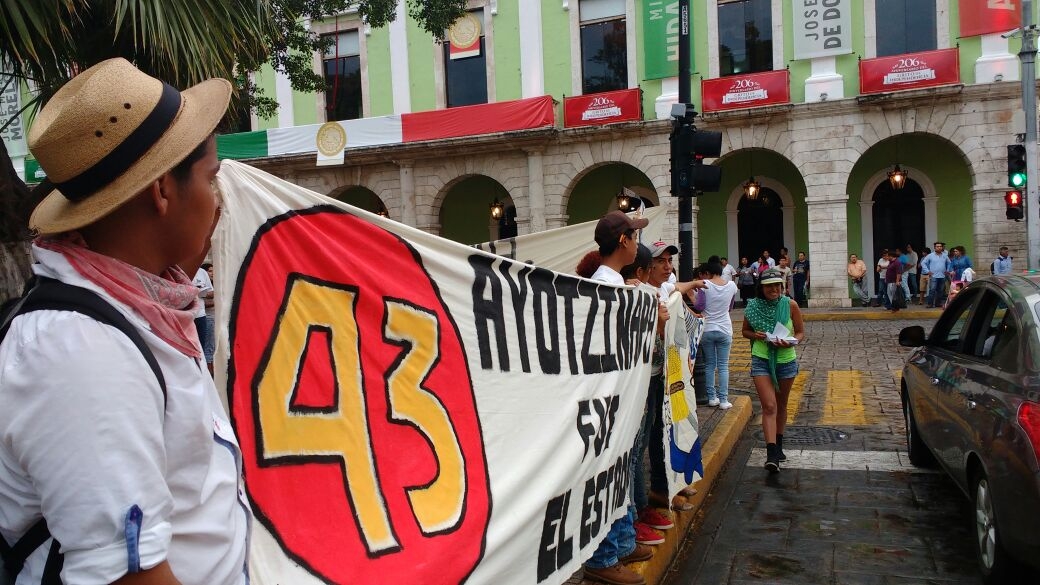 El conteo del uno al 43, exigencias de castigo hacia los responsables y el retorno con vida de los desaparecidos es lo que expresan los manifestantes, muchos de ellos de la Universidad de Chapingo con sede en Mérida.