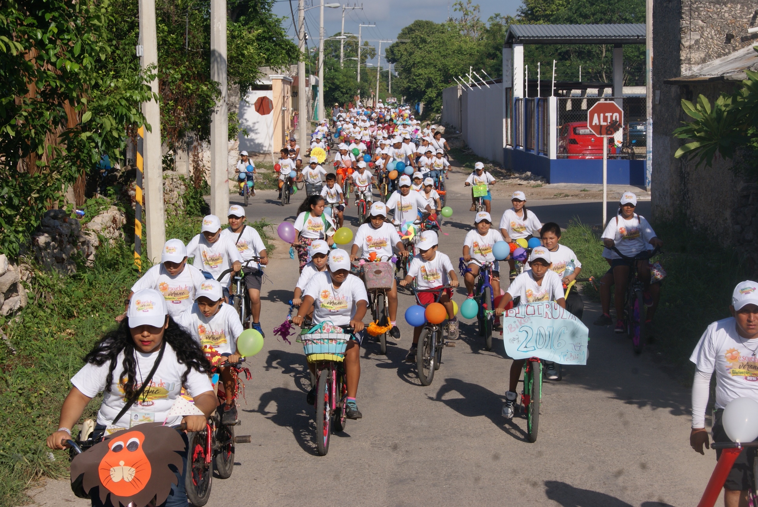 Con la entusiasta participación de los niños que forman parte del programa “Bienestar en Vacaciones” con sede en la Col. Rogelio Chalé de Motul, se llevó a cabo una actividad llamada Biciruta.
