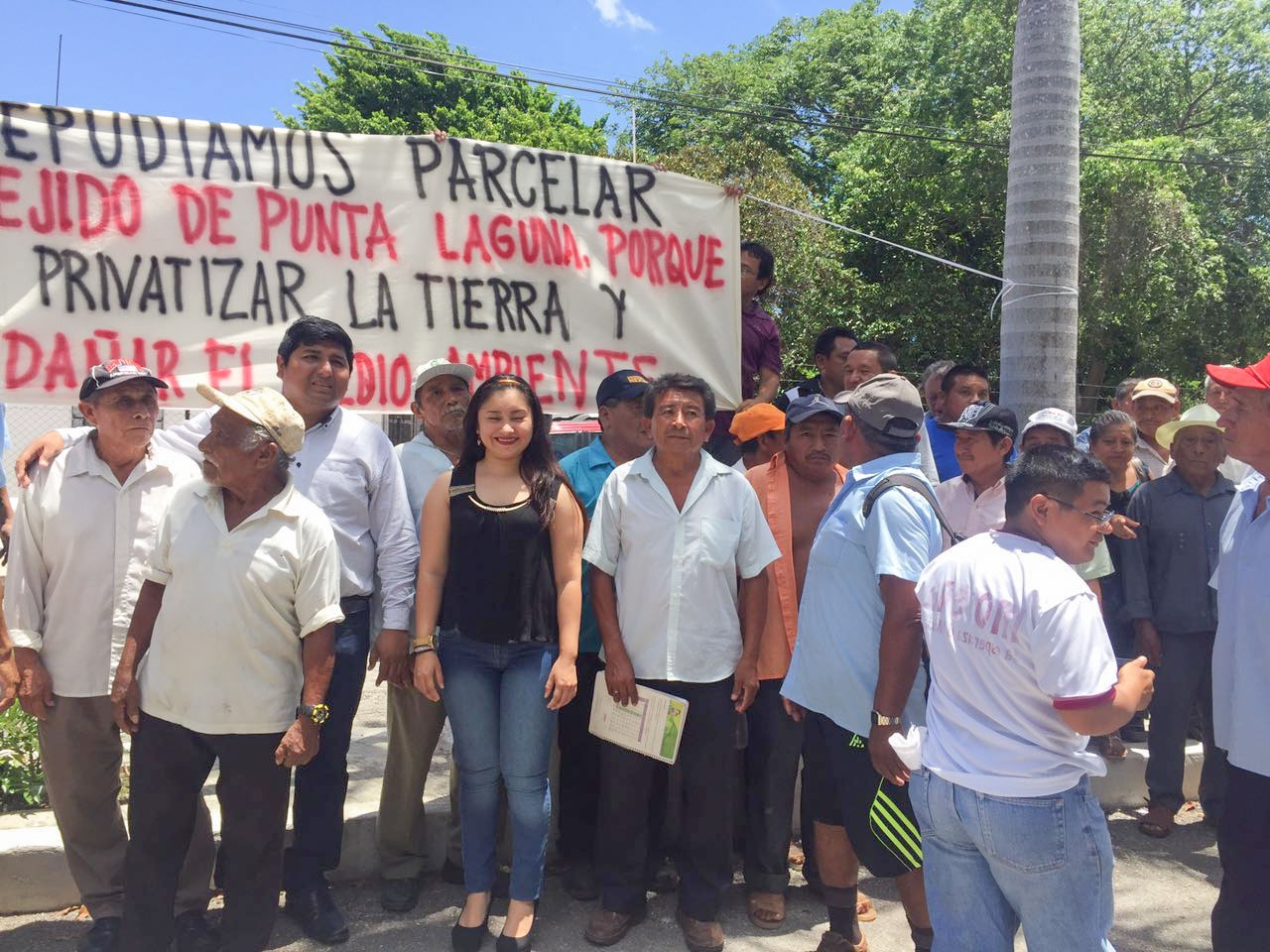 “Desde Mérida a Tizimín, las tierras en las orillas de las carreteras ya pasaron a manos de ricos hombres de la capital yucateca. Sólo les han dejado sus tierras a los ejidatarios a 3 o 4 kilómetros de las carreteras”, afirmaron ejidatarios de otros ejidos yucatecos y militantes de Morena en Yucatán a través de un altavoz instalado afuera del tribunal, donde también colocaron mantas en las que denunciaban el “ecocidio” que se pretende realizar en Punta Laguna.