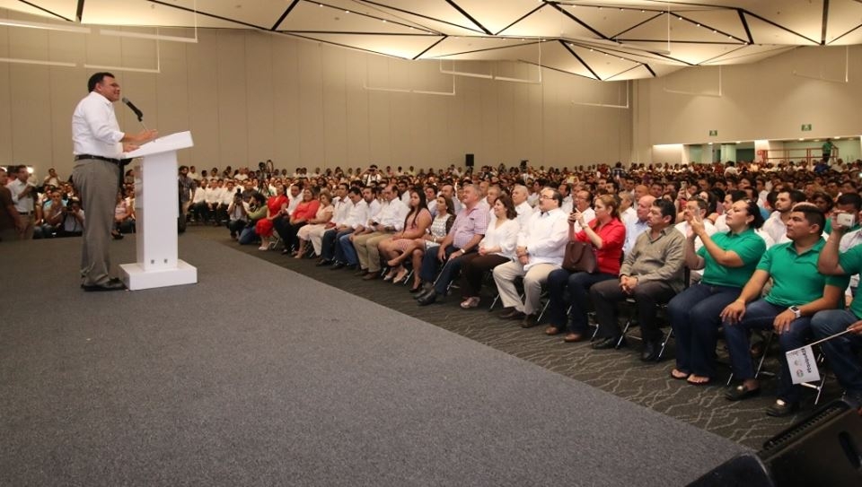 El primer priísta del estado, como lo proclamaban ayer en el Centro de Convenciones Yucatán Siglo XXI, ante unos 5 mil miembros de dicho partido, incluyendo a militantes, funcionarios y representantes públicos, marcó con su discurso el banderazo de salida de cara a la sucesión en 2018, a través de la unión del PRI, llamó a sus correligionarios a convertirse en contralores del estado y renovarse.
