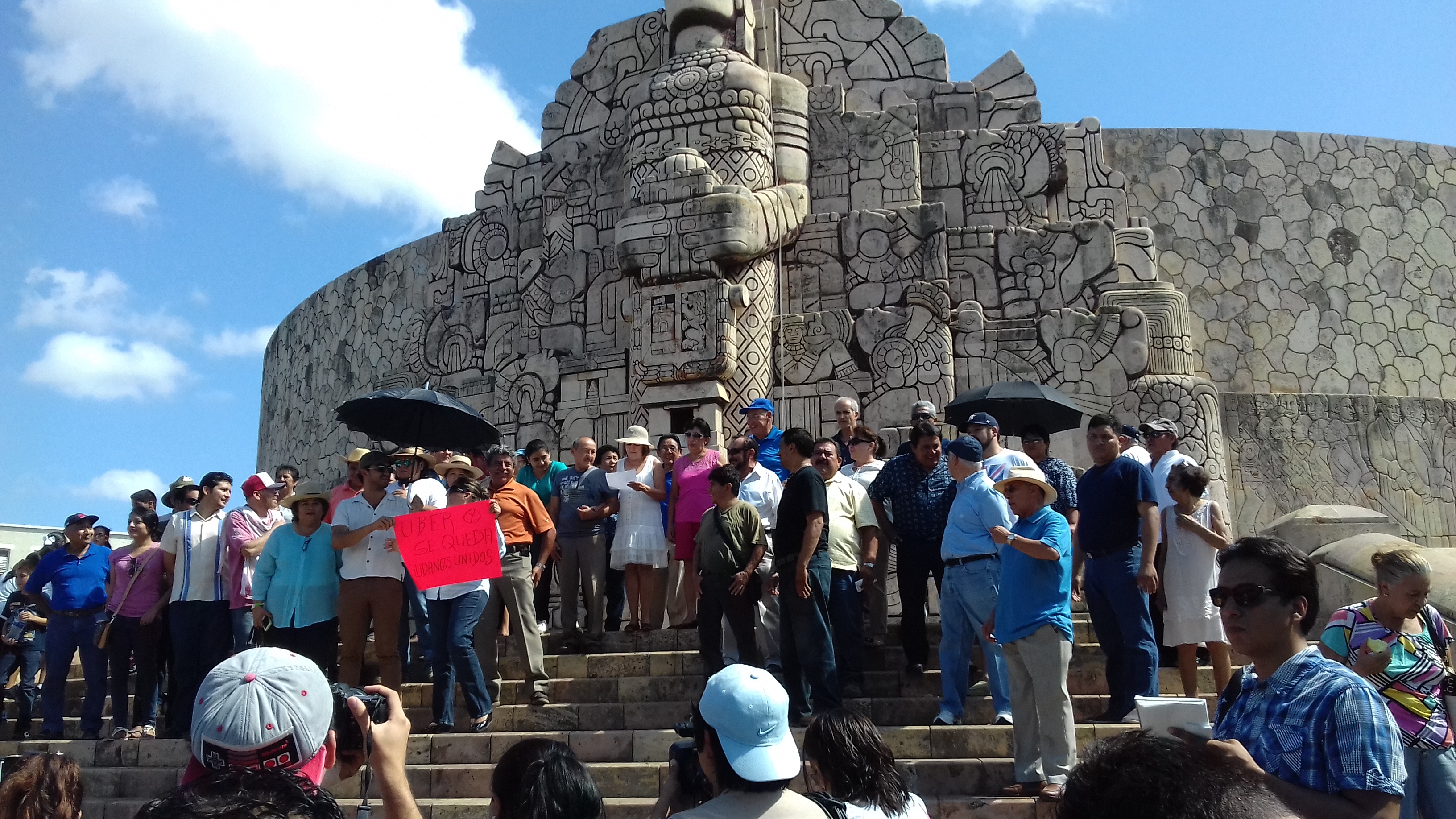 Decenas de meridanos se manifiestan en el Monumento a la Patria de Mérida para protestar contra la violencia ejercida por los taxistas del Frente Único de Trabajadores del Volante (FUTV).