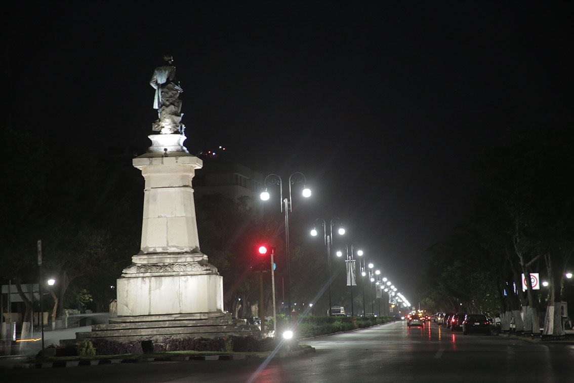 Por este motivo se adquirieron 27 luminarias tipo Grand Ledge para colocar en el camellón central en el tramo que va del Remate del Paseo de Montejo hasta el Monumento a la Bandera.