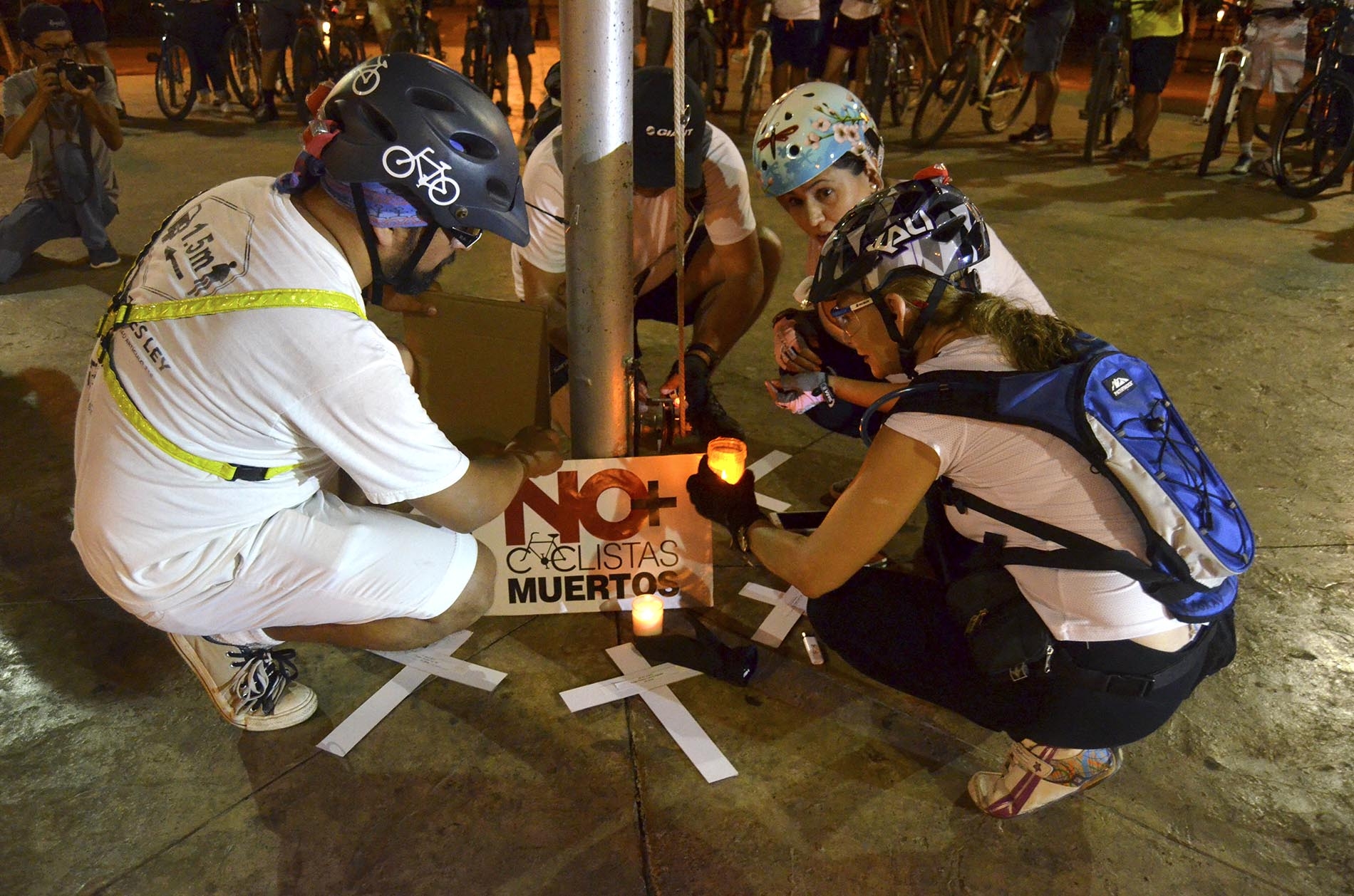 Everardo Flores Gómez, quien habló en nombre de la asociación, colocó alrededor del asta bandera de la Plaza Grande seis cruces blancas; por los "caídos", y pidió a los presentes a "insistir" ante las autoridades para que intervengan por los ciclistas y peatones que a diario se ven afectados en su desplazamiento por la ciudad.