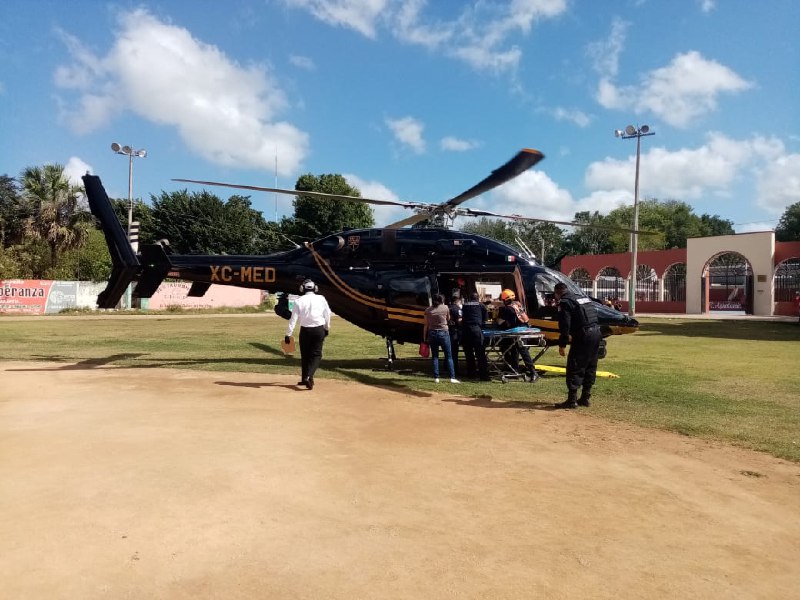 Paramédicos de la SSP destacados en el sur del estado prepararon al paciente para su traslado en el helicóptero, a bordo del cual viajaba otro equipo de paramédicos que lo atendió hasta llegar a Mérida, al campo deportivo de la Preparatoria 1 de la Universidad Autónoma de Yucatán (UADY), donde otra ambulancia de la corporación lo esperaba para llevarlo al Hospital General Regional Número 1 “Ignacio García Téllez” del Instituto Mexicano del Seguro Social (IMSS), conocido como T-1.
