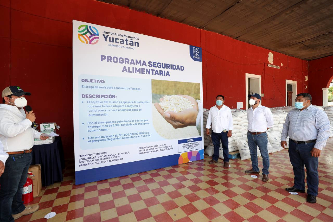 El impacto de tres tormentas tropicales y dos huracanes en Yucatán causaron fuertes afectaciones al cultivo del maíz para autoconsumo, lo que generó que el grano escaseara y su precio incrementara hasta en 30 por ciento, propiciando que las personas enfrentaran dificultades para conseguir alimento, por lo que el gobernador Mauricio Vila Dosal determinó apoyar a 224 mil familias yucatecas de 75 municipios con la distribución de 8 mil 900 toneladas del cereal dentro del programa “Seguridad Alimentaria”, para mejorar sus condiciones nutricionales y respaldar su economía.